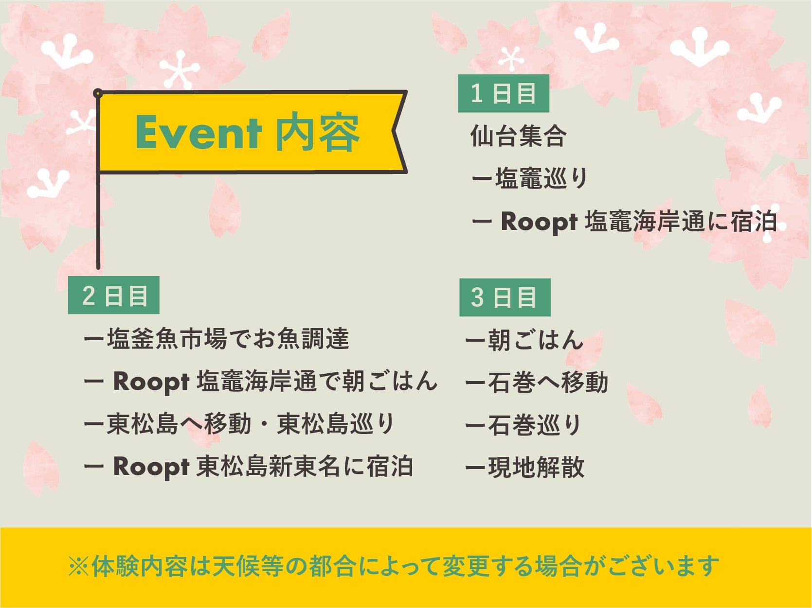 15,000円コース:宮城に春を取り戻せ!Roopt巡り MEET UPイベント参加券 (各回5
