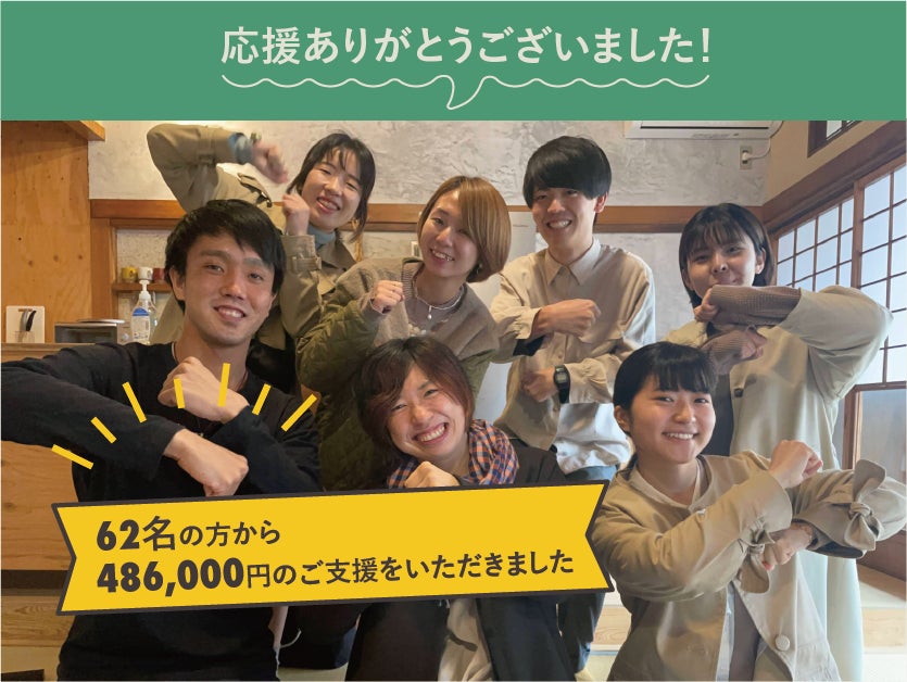 2022/05/31 13:53昨日、プロジェクトが終了し、40日の期間を通して62名の方から486,000円のご支援をいただきました!これをきっかけに宮城県に足を運ぶ機会がつくれたら幸いです。Rooptはこれからも宮城県を起点に全国各地に展開していきたいと思っておりますので、その途上で皆様ともますますご一緒できる機会が増えたら幸いです。5月20日は東北新幹線も再開し、余震の記憶も徐々に皆様の記憶から薄れてきていると思います。実は宮城県は東日本大震災以降、毎年のように3月には大きな余震が遅います。その度に少しずつ危機管理を行いながら、想定外に対応しなあら少しずつ新しいアイディアを生み出しています。どこの地域でもそうだと思いますが、ピンチは新しい繋がりやアイディアを生み出すチャンスでもあります。私たちもシェアハウスの事業を通して皆さまと支え合える繋がりやきっかけをたくさん生み出していければと思いますので、今後ともどうぞよろしくお願いいたします!最後まで読んでくださりありがとうございました。今後ともRooptの活動をチェックお願いします!~1日から入居できる「自由な生き方応援」シェアハウス『Roopt』~公式サイト https://roopt.jp/Instagram https://www.instagram.com/roopt_sharehouse/Facebookページ https://www.facebook.com/roopt.sharehouse もっと見る