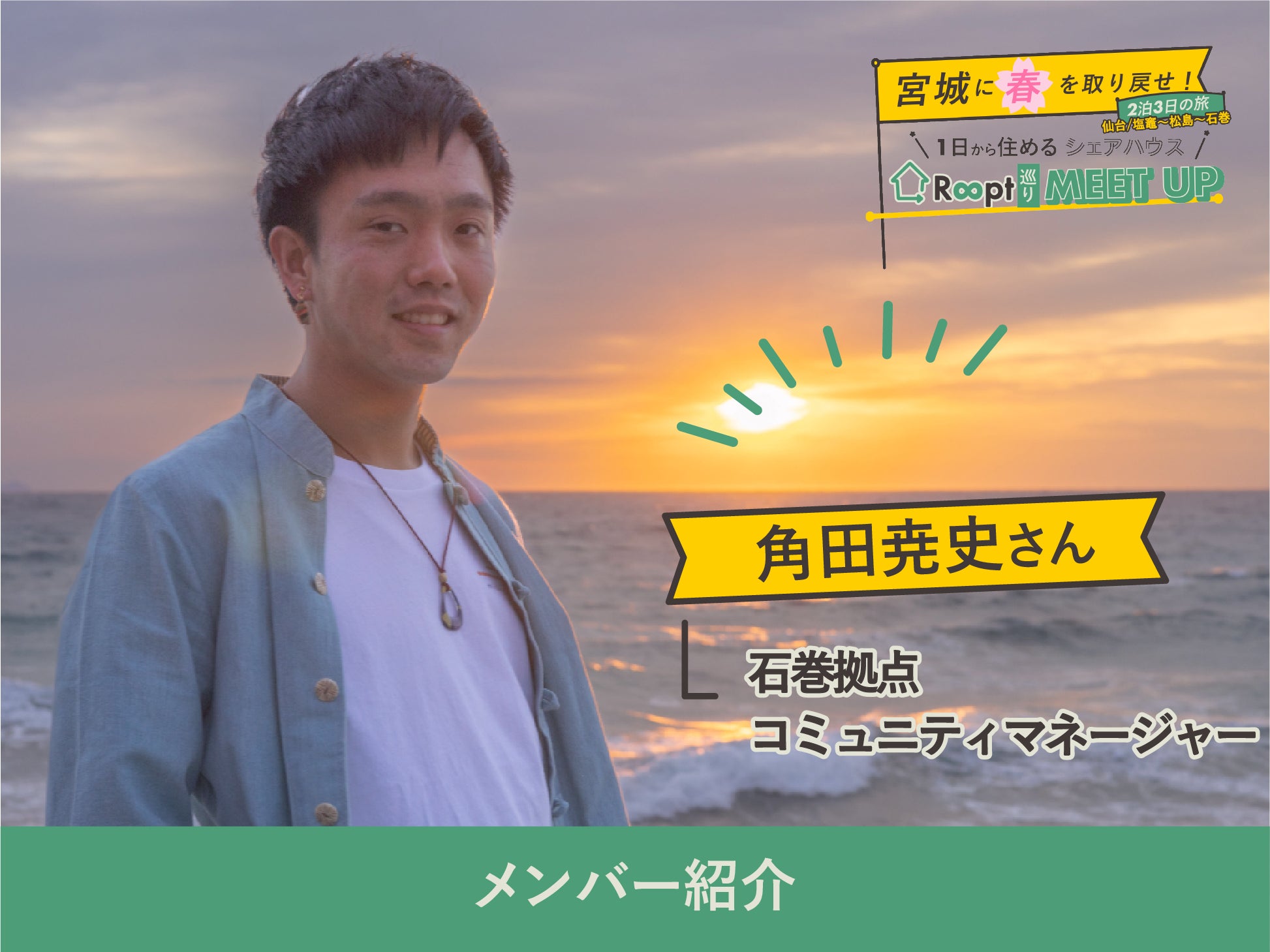 はじめまして。愛媛県出身で、2021年11月から石巻で暮らしている角田尭史(すみだたかし)と申します。