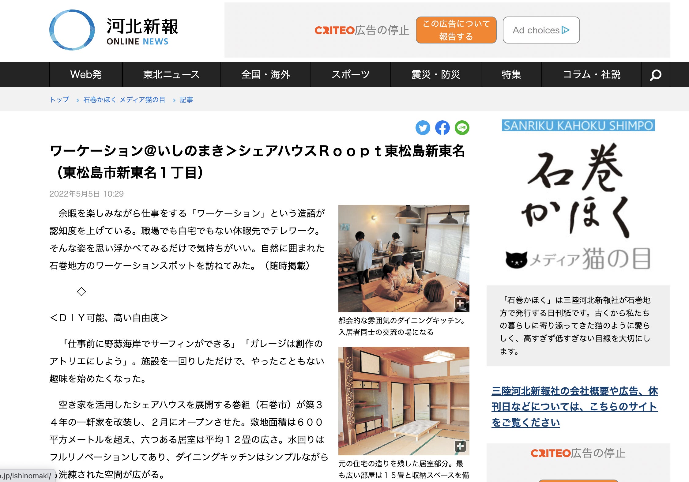そんな中、先日開催されたMEET UPイベントの様子が地元石巻の地域新聞である「石巻かほく」に大きく取り上げていただきました。