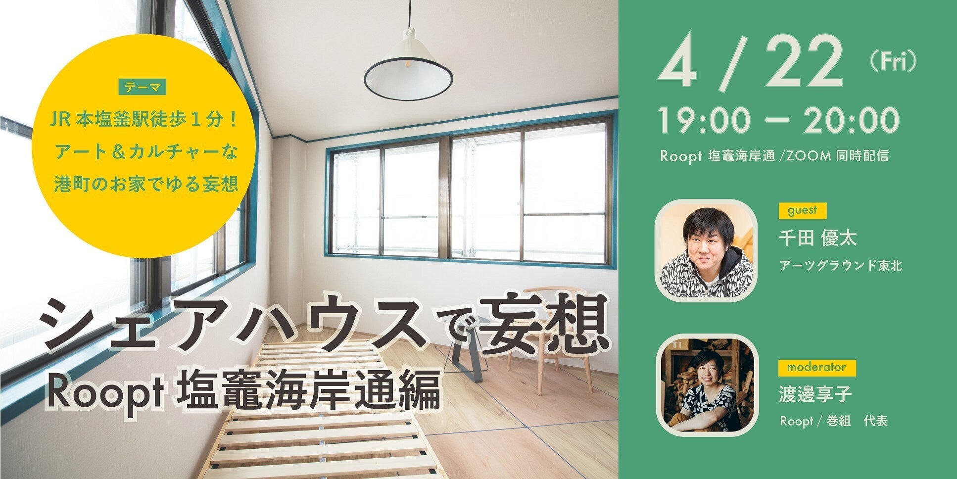 今年3月より開催している、Rooptのシェアハウスを舞台にしたゆる〜いトークイベント「シェアハウスで妄想」塩竈編第2回を4月22日に開催。