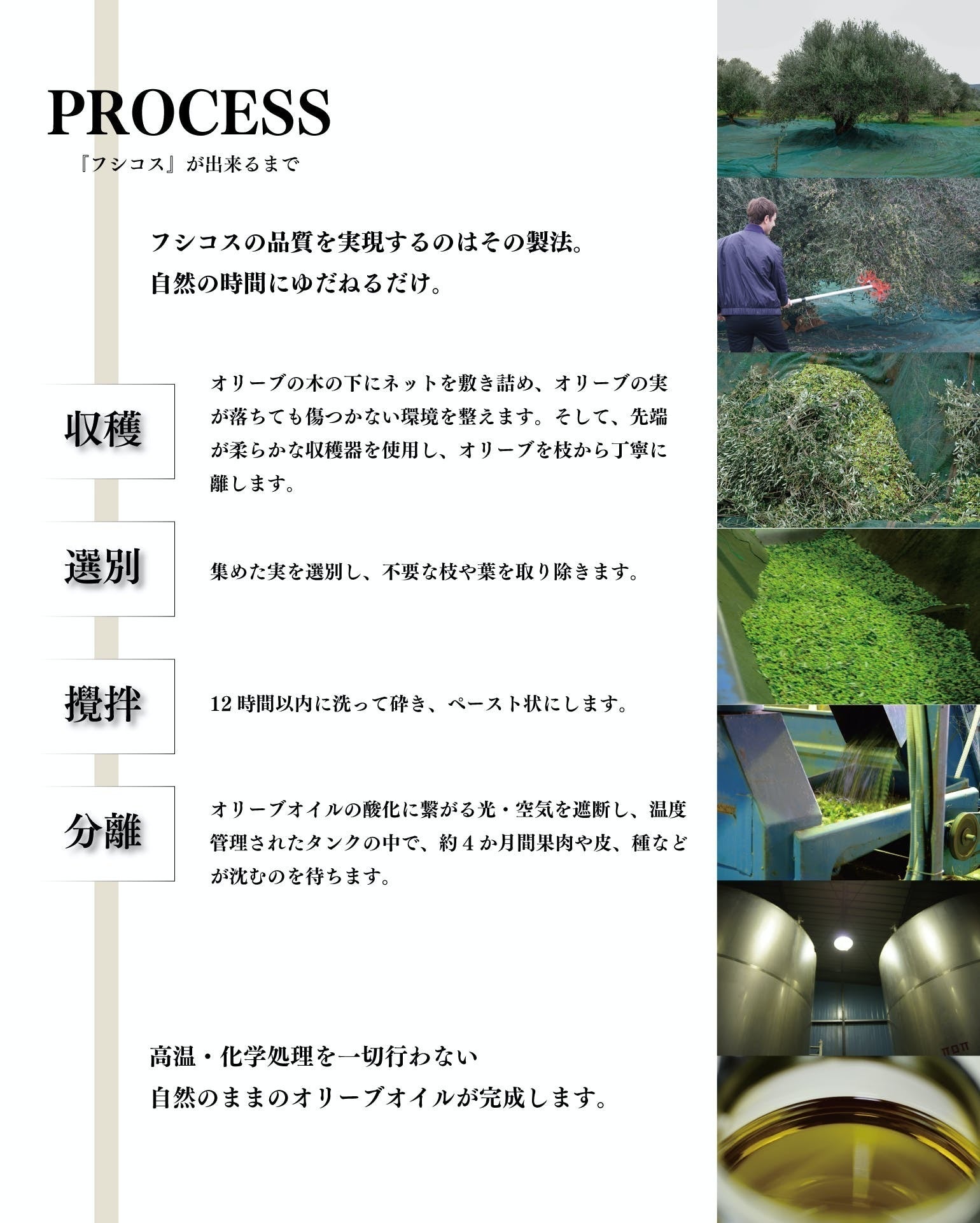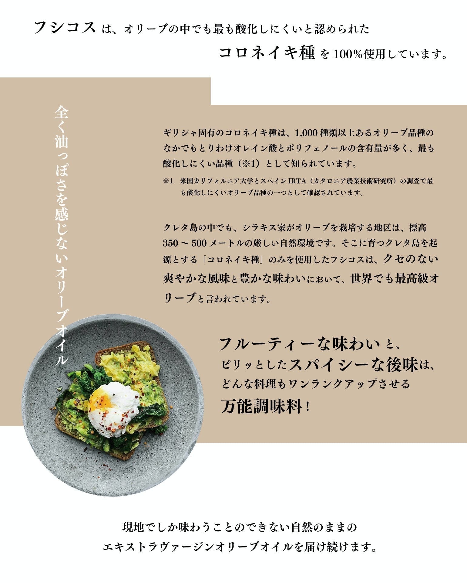 オリーブオイルを取り扱う事業者の中には、安定供給が出来なくなっているお店や、値上げせざるを得ないお店も多いようですが、フシコスのオリーブオイルはこれまでと変わらない品質と価格で毎日の健康に役立てていただきたいと願っています。
