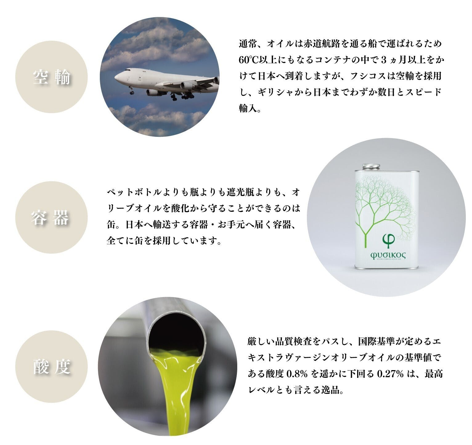 100年の歴史で培った油に関するノウハウがあったからこそ、鮮度を落とすことなく遠いギリシャのオリーブオイルを日本へ輸入しお届けすることが可能になったのです。