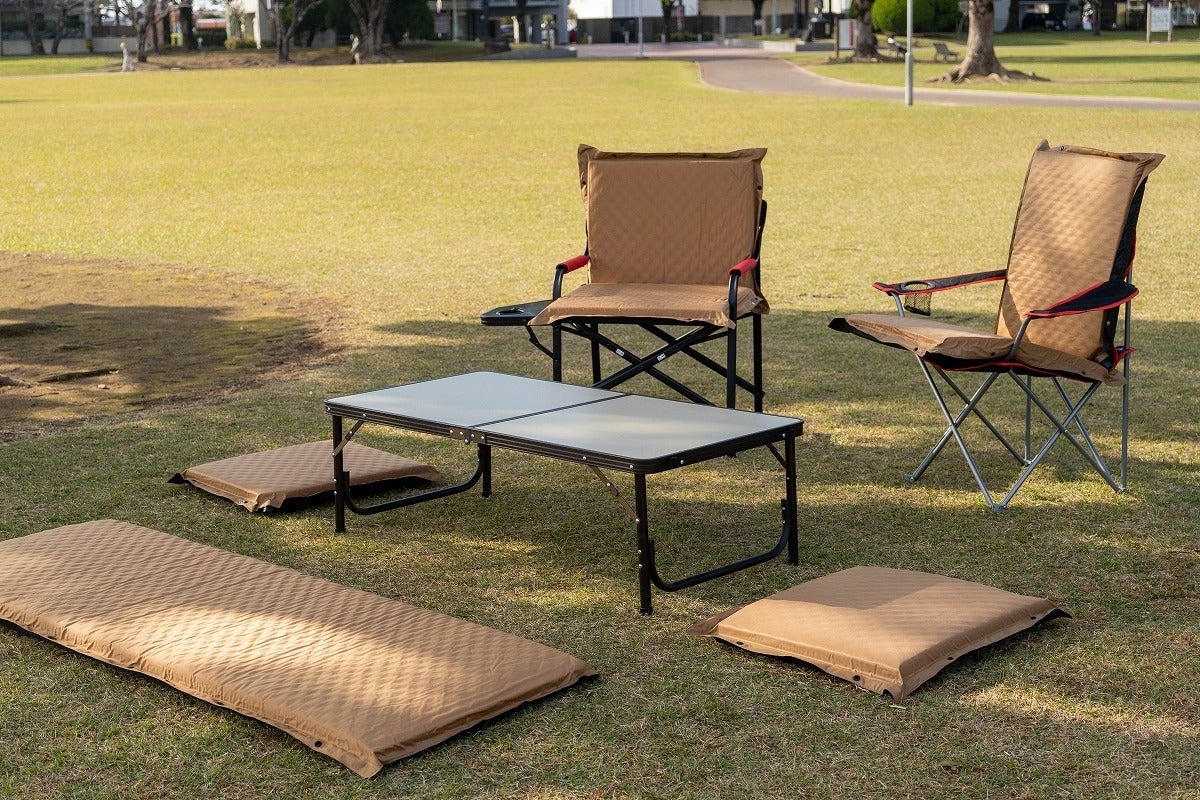座布団型の小型マットは一般的なアウトドアチェアにぴったりはまるサイズなので、より快適な座り心地を実現してくれます。