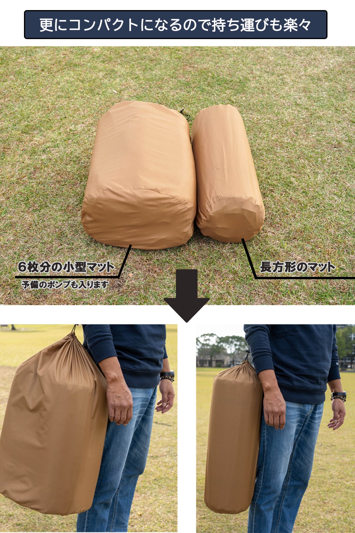 1つのマットに1つの収納袋が付いているので、ご利用用途に合わせて使う枚数だけ持ち運ぶこともできます。