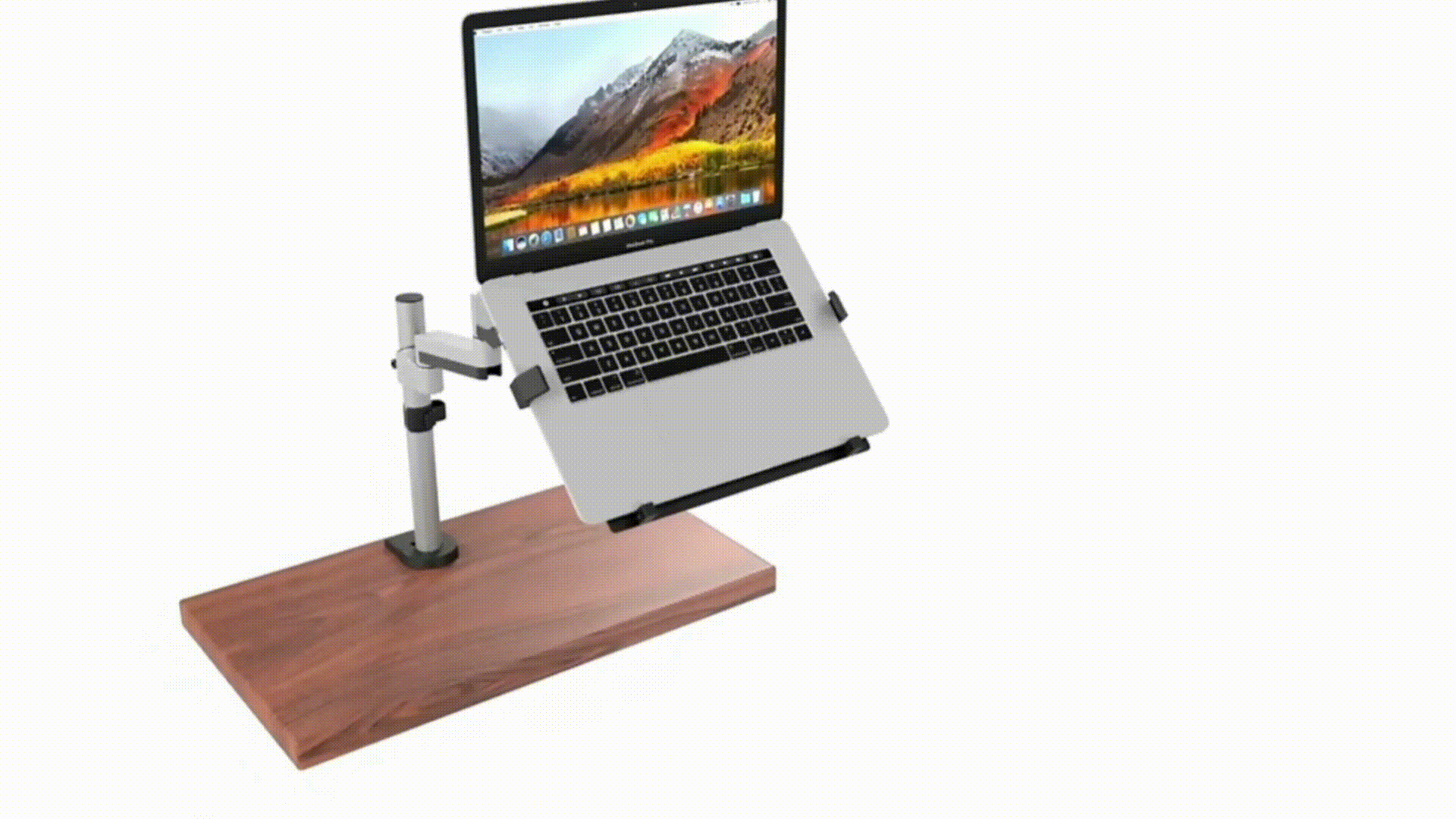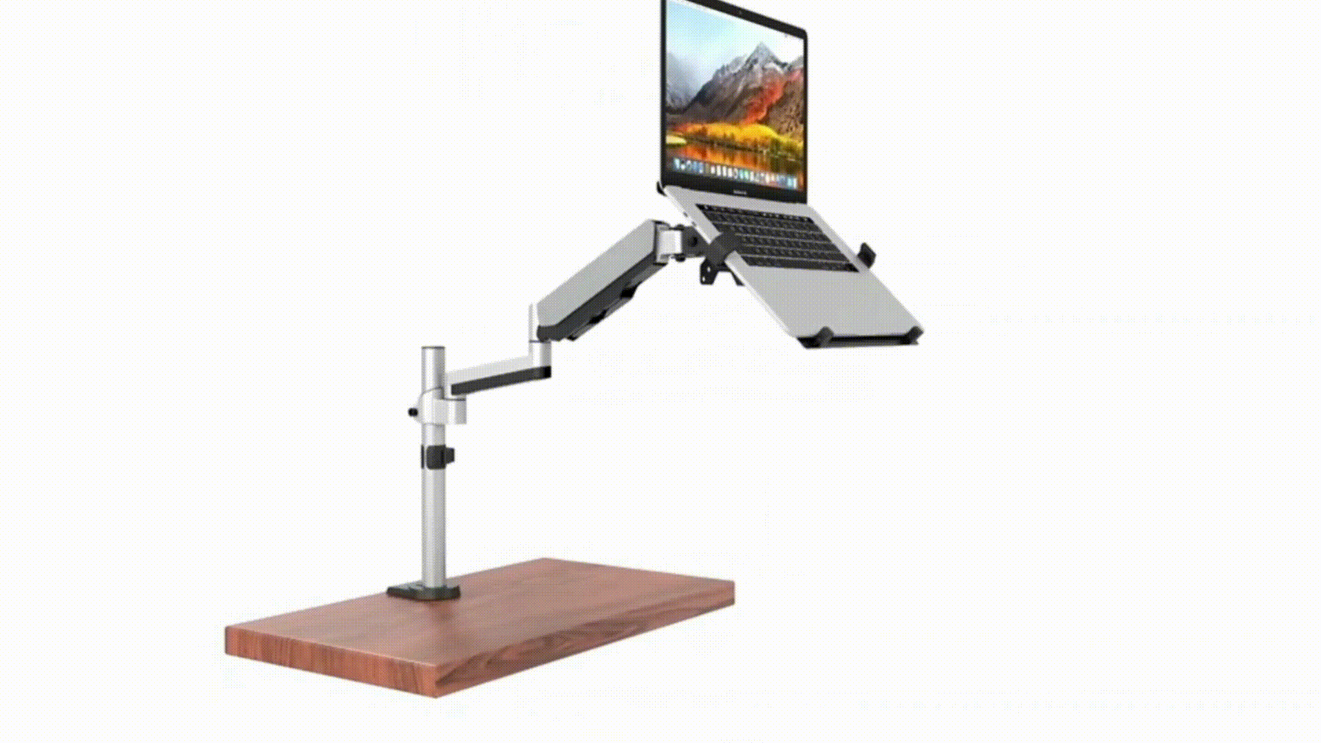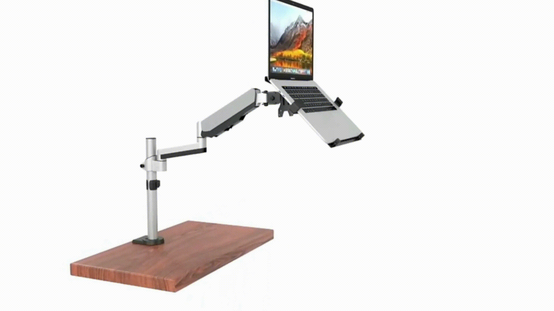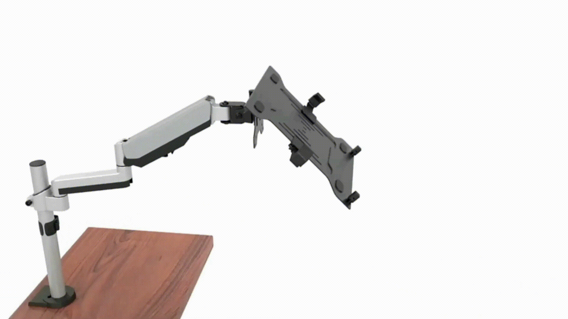 アーム式ノートパソコンスタンドを利用することで、ノートパソコンの目線の高さの微調整が必要な時に非常に便利です。水平に±90度、垂直面傾斜も±90度調節が可能です。ノートパソコンは差し込むだけですが、しっかり固定するストッパー付きで安心性にもこだわりました。