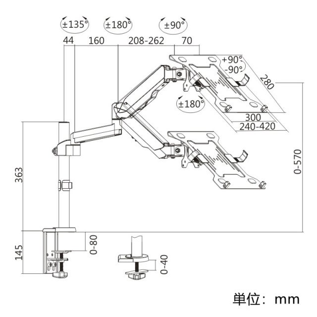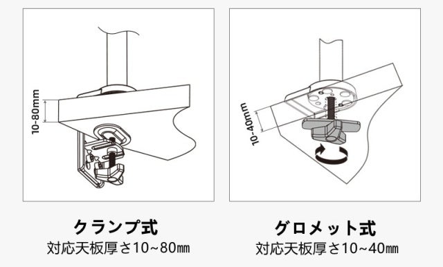 クランプ式:(対応する天板の厚さ10~80㎜)