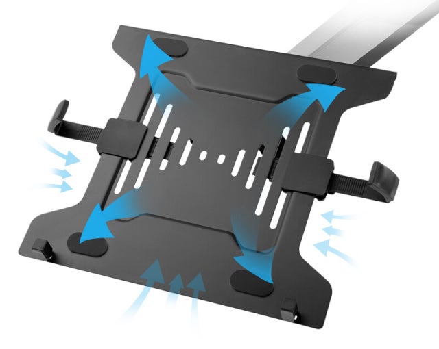 ノートパソコンを載せるホルダー部も上下左右に動かせます。