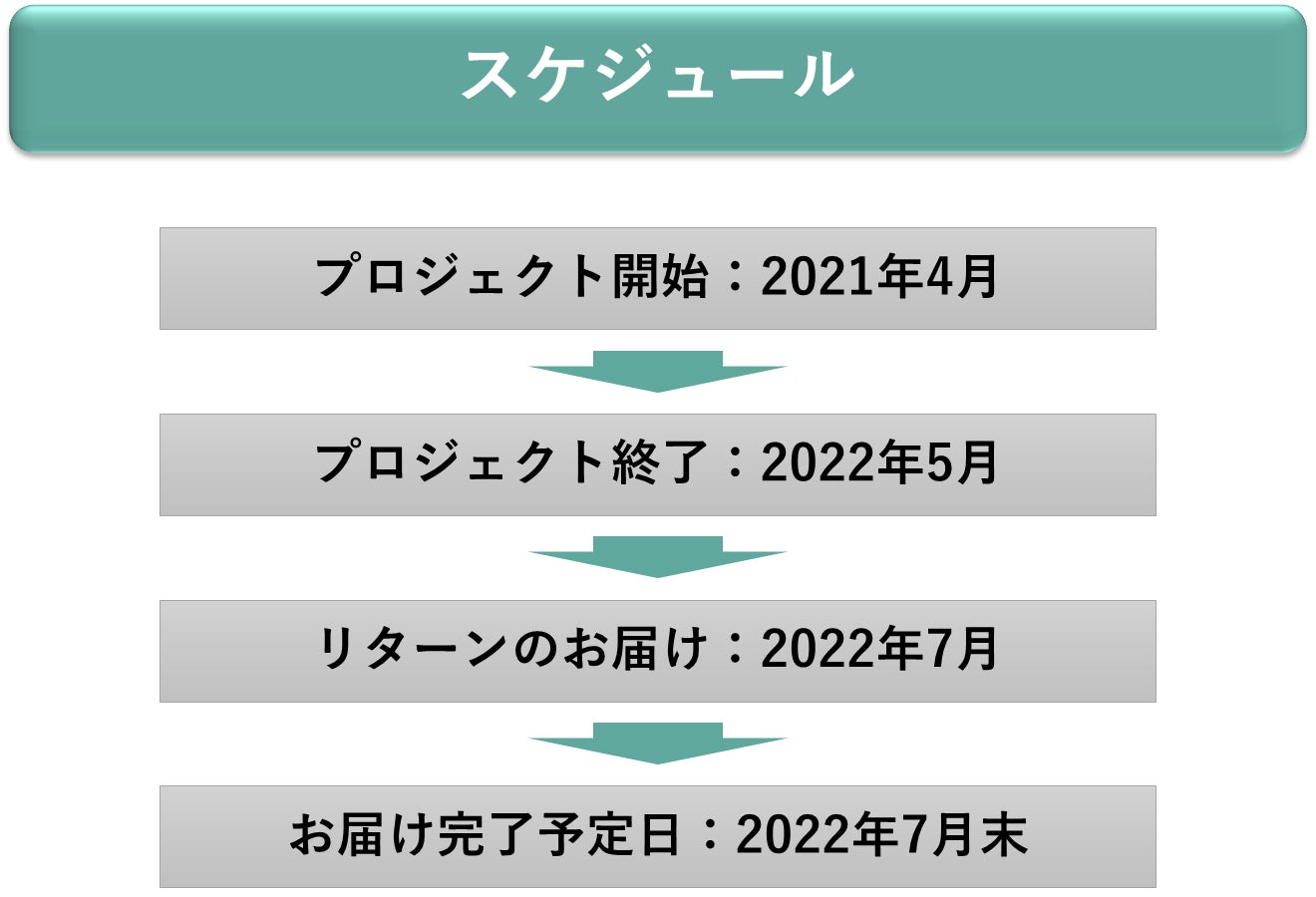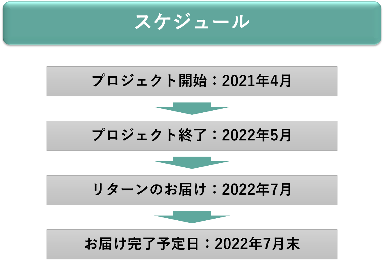 ※本文中に記載させていただいたスケジュールは、あくまでプロジェクト公開時点の予定です。応援購入の性質上、配送遅延のおそれがございます。 ※原則として、配送遅延に伴う応援購入のキャンセルはできませんが、リターン配送予定月から2ヵ月を超えた場合には、希望者に限りキャンセルにて対応させていただきます。