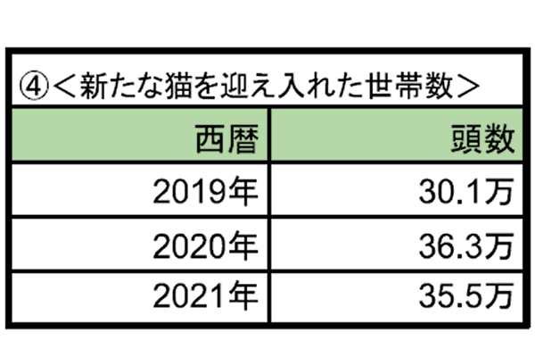 以下は、「一般社団法人ペットフード協会」さんの調査データより引用させていただくものですが、2020年、2021年と続けて、新規飼育の頭数、世帯数ともに、激増していることがわかります。