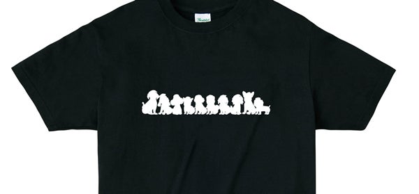 寿司犬たちのシルエットをプリントしたシンプルなデザインのTシャツです。