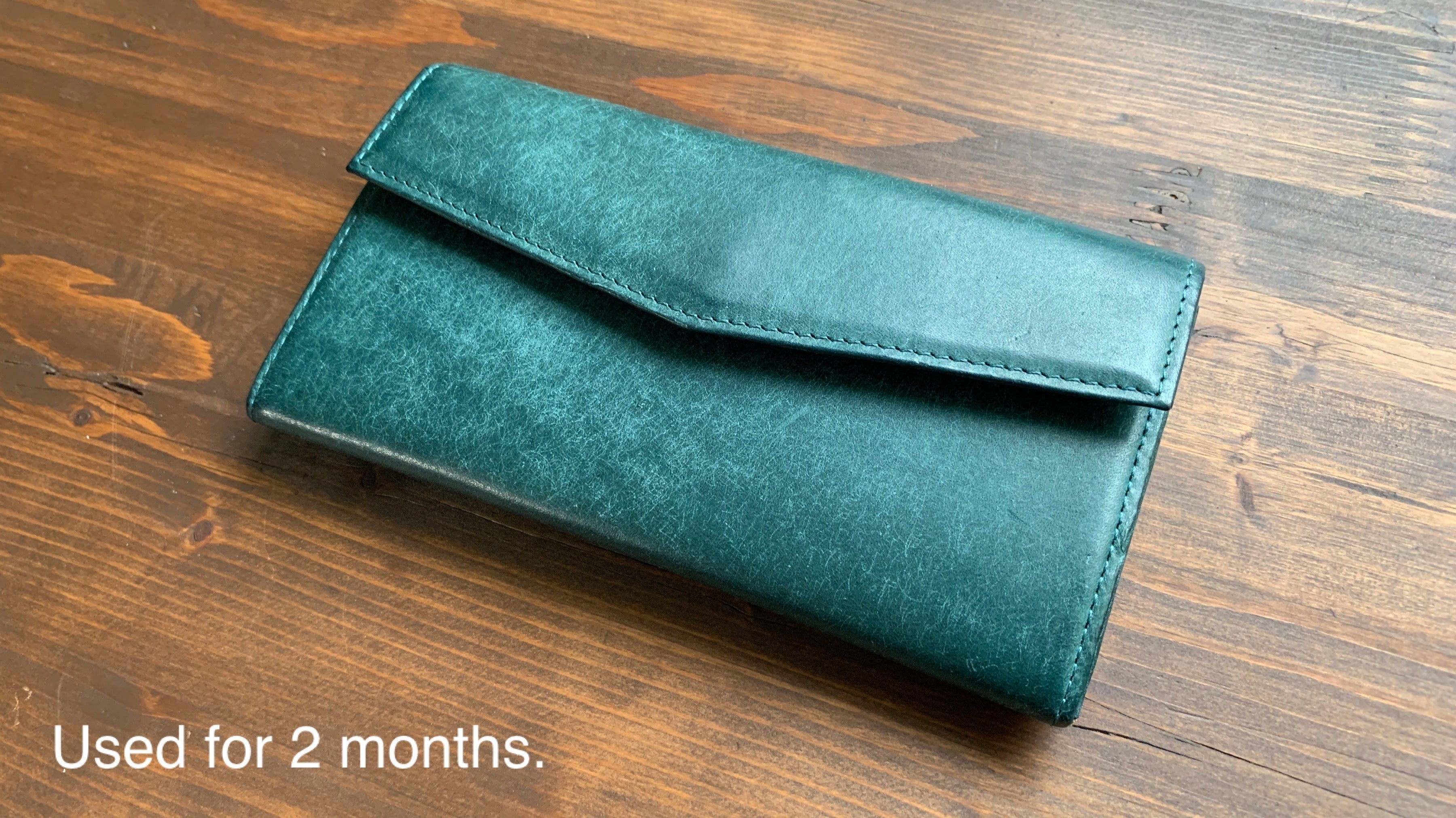 支援者の皆様へ多数のご支援により、現在の達成率はなんと499%を超えました。数多くのご支援をいただき誠にありがとうございます。支援を検討していただいている方も多数いらっしゃるかと思いますので、イメージを掴んでいただくため経年変化サンプルのご紹介をさせていただきたいと思います。画像はスタッフが2ヶ月程愛用しているBUSTA (ペトローリオ)です。使い初めはザラッとした独特の質感が特徴のプエブロですが、使っているとよく触れる部分から徐々にツルッとした手触りに変化していき、光沢が出てきます。伝統的な製法で鞣された高級皮革だからこそ味わえる素晴らしいエイジングを是非お楽しみいただければと思います。