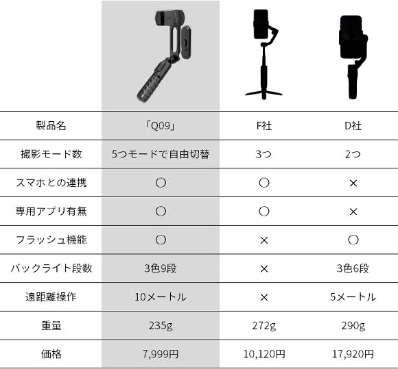 「Q09」は多様なモードで映像作成ができます。オリジナルアプリを使用することでワンボタン写真撮影や録画が可能な小型軽量ジンバルです。操作は簡単で、誰でも「プロレベル」の映像を撮影できます。
