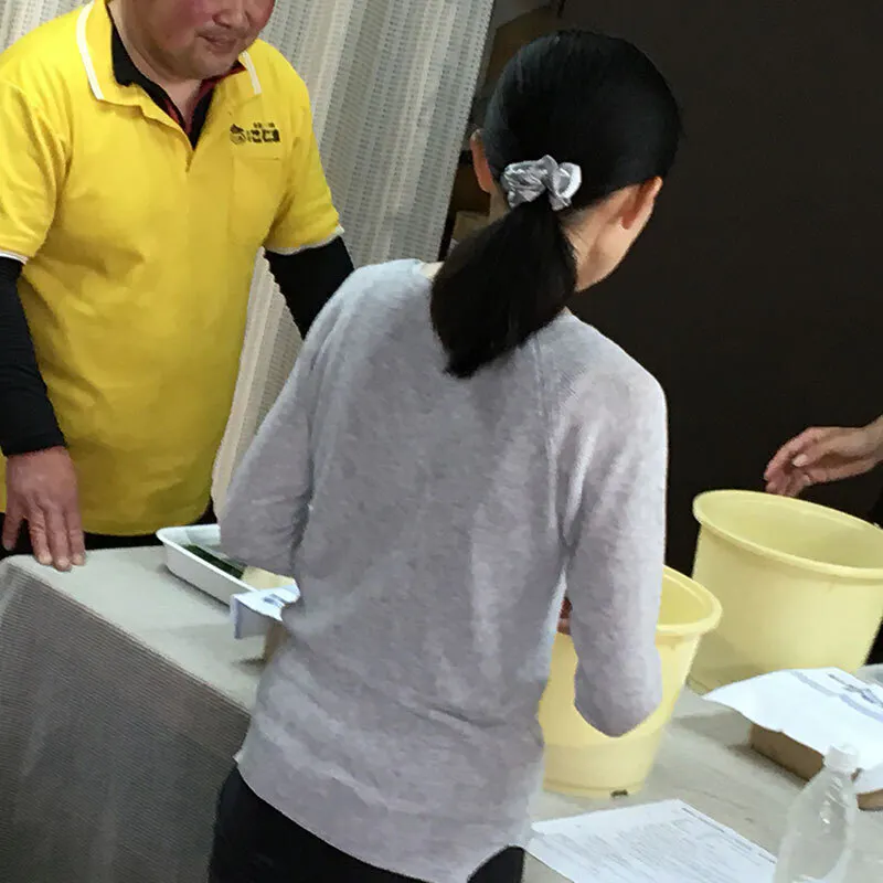 大手メーカーさんは野菜の洗浄や切断、パック詰めなどは機械化、下漬の塩度やつけ汁などは数値化されてつくっておられますが、我々は手作業ですることにより自然のものである野菜一つ一つに目が届き、野菜によって皮を厚く剥いたり薄く剥いたり、塩を多く振ったり少なくしたり、重石を重くしたり軽くしたり漬ける時間を長くしたり、少なくしたり等を繰り返し最後に手で袋詰めすることにより最後の最後まで目で見て手で触り、確認をしております。これらの手作業は長い経験が必要で時間のかかる手間なことかもしれませんがこうやって日々美味しい漬物を皆様に届けております。