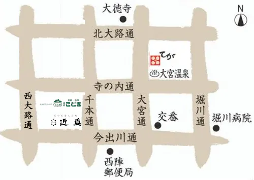 西陣界隈の3社の本店地図