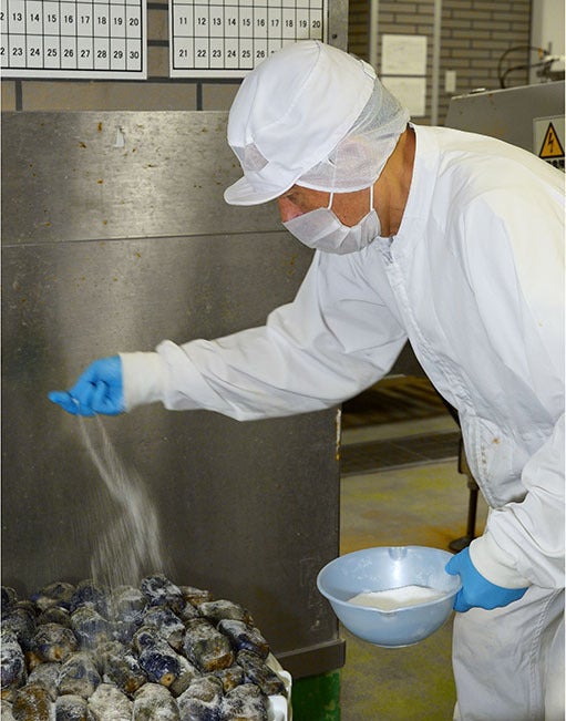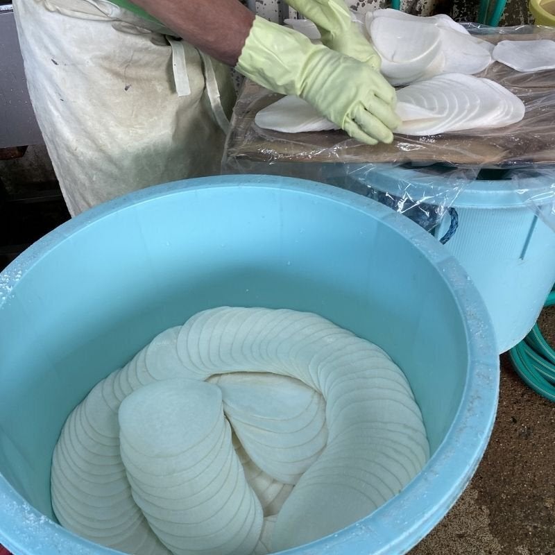 大手メーカーさんは野菜の洗浄や切断、パック詰めなどは機械化、下漬の塩度やつけ汁などは数値化されてつくっておられますが、我々は手作業ですることにより自然のものである野菜一つ一つに目が届き、野菜によって皮を厚く剥いたり薄く剥いたり、塩を多く振ったり少なくしたり、重石を重くしたり軽くしたり漬ける時間を長くしたり、少なくしたり等を繰り返し最後に手で袋詰めすることにより最後の最後まで目で見て手で触り、確認をしております。これらの手作業は長い経験が必要で時間のかかる手間なことかもしれませんがこうやって日々美味しい漬物を皆様に届けております。