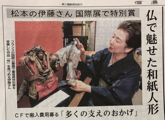 信州・松本という田舎のおばあちゃんが作った人形が、遠くフランスの地で高く評価されるのは、我が母ながら誇らしく、多少なりとも皆様にも知っていただければ思います。(これも息子としての私自身の利己的な希望ではありますが...)