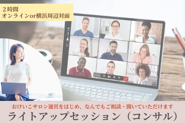 こちらのセッションは「光の当たる場所にあなたを引き上げるセッション」として、おけいこサロン運営を始め、なんでもご相談いただけるマンツーマンのコンサルティングになります。