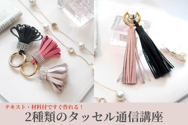 縫わないレザークラフト「レザクラージュ®」が初めての方にもおススメの「2種類のタッセル」講座+お礼のお手紙セットです。