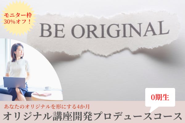 レザクラージュ®を0から作り上げてきた石黒が、あなたのオリジナル講座をトータルプロデュースする4か月コースです。あなたのオリジナルを引きだすヒアリング~リリースまで、4か月でサポートしていきます。