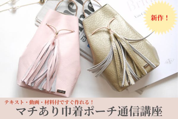 【クラウドファンディング新作】縫わないレザークラフト「レザクラージュ®」の新作!「まちあり巾着ポーチ通信講座」+お礼のお手紙セットです。