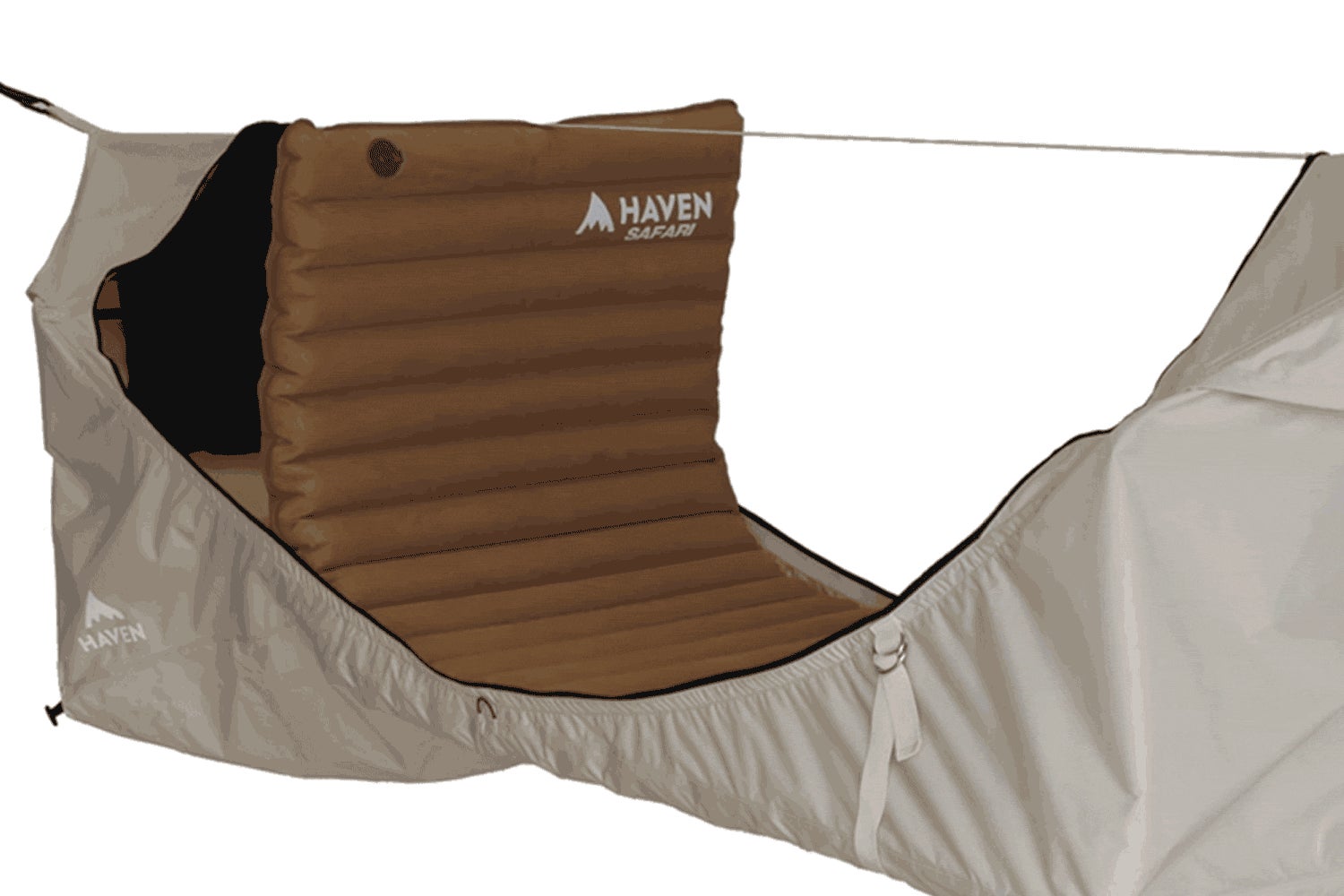 ヘブンテントはレインフライ、蚊帳、エアマットなどキャンプ泊に必要な一式が全てセットになっているので、テントが不要になります。