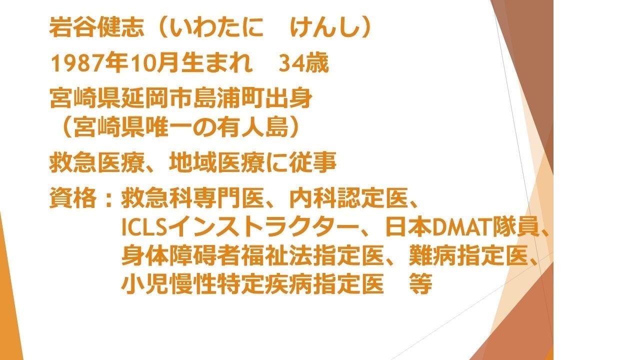 宮崎県延岡市から、発起人で医師の岩谷健志(いわたに けんし)と申します。