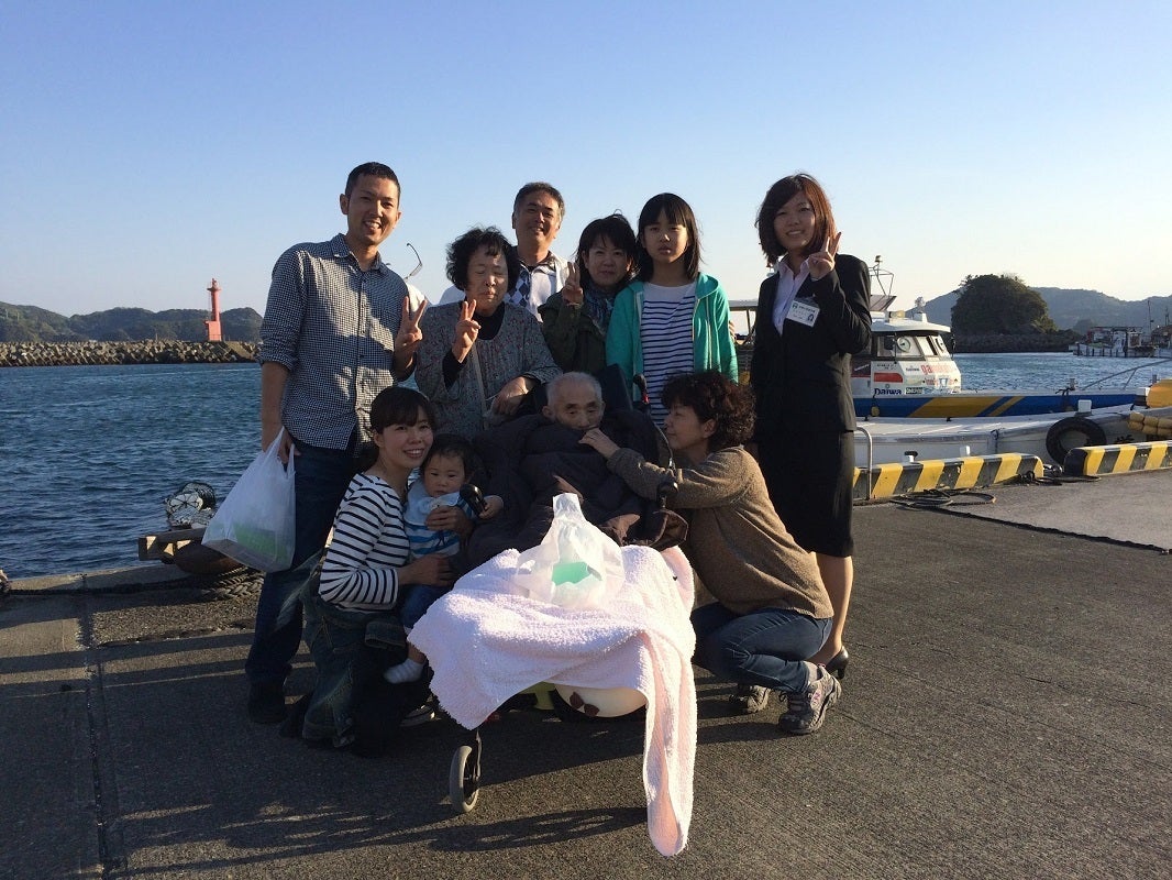 祖父が亡くなる前日。本土から島が見える港で家族と一緒に。
