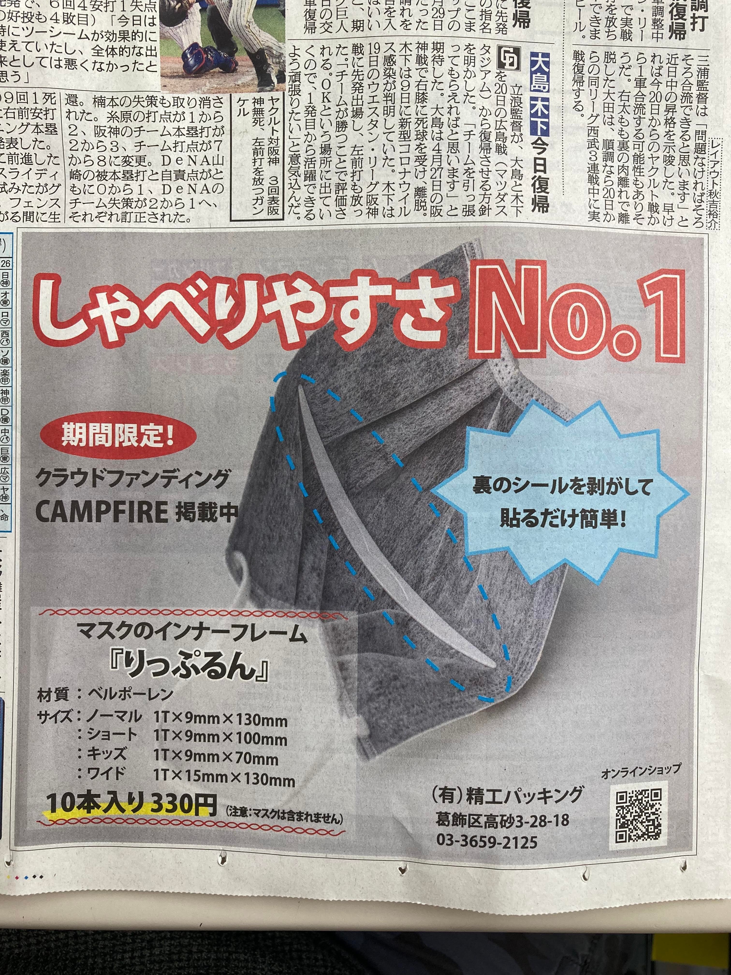 本日5月20日の日刊スポーツ新聞の1面めくったところに掲載されています!