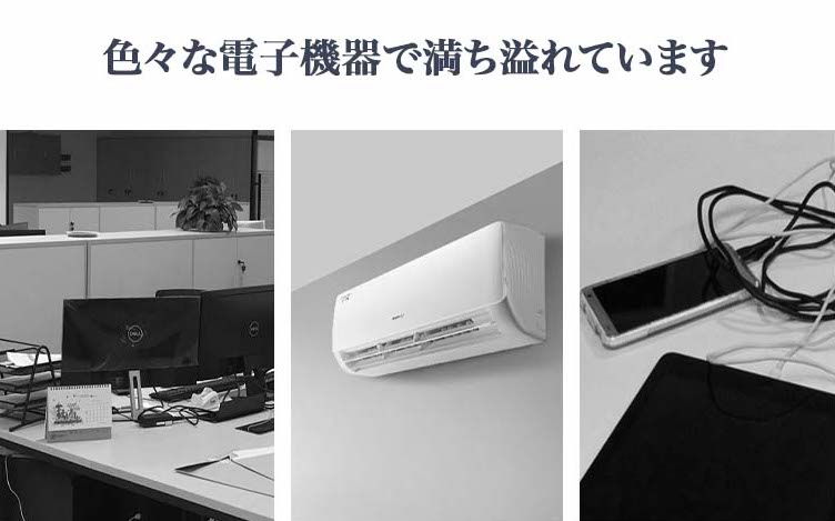 - スマホ充電器、アロマディフューザー、加湿器、現代の社会人の寝室やワークスペースは様々な電子機器で満ち溢れています。
