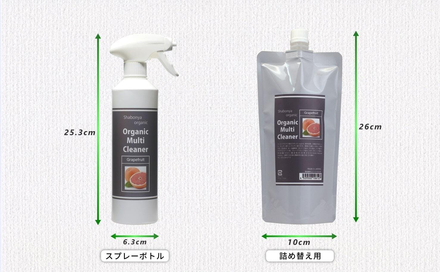 詰め替え用:高さ26cm × 長さ10cm × 奥行6cm