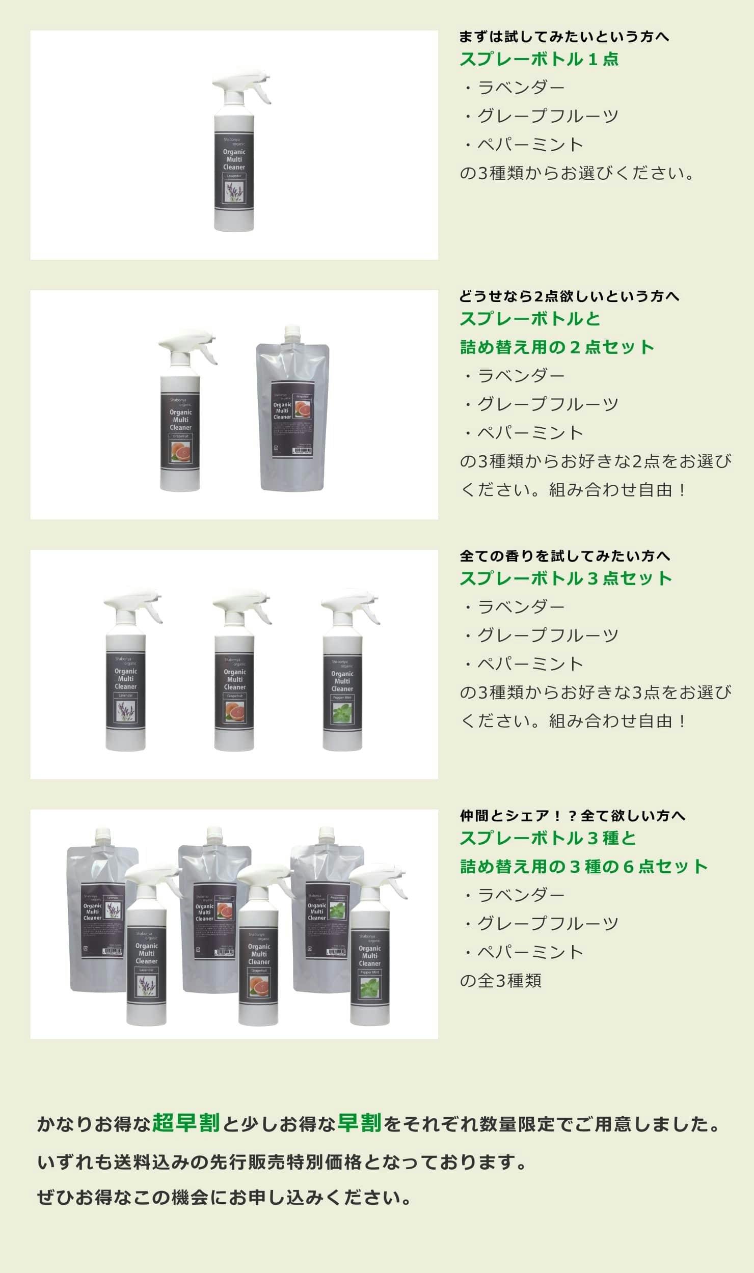 スプレーボトルと、詰め替え用を2つのタイプをご用意しました。