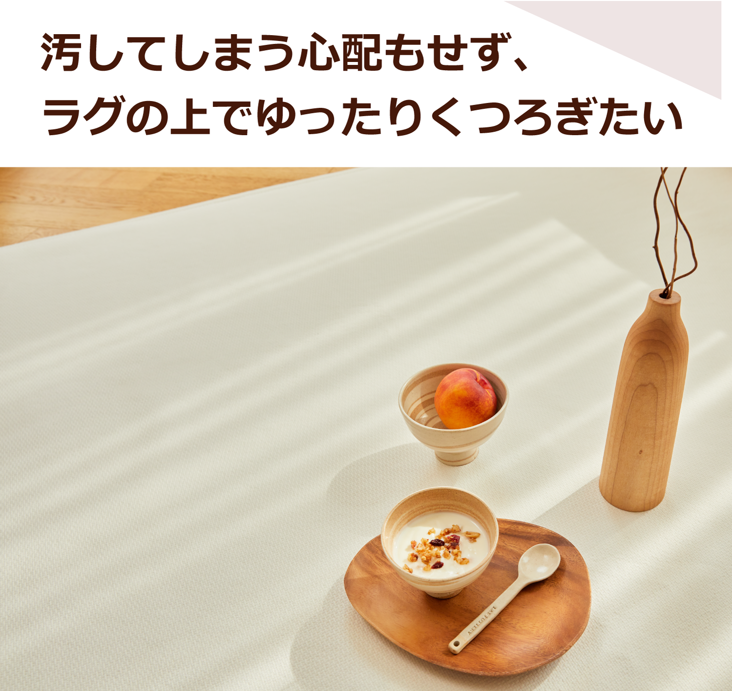 飲みものをこぼしてしまったり、ペットがトイレを失敗してしまったり、ホコリがついたりと、床に敷くマットはどうしても汚れがち。