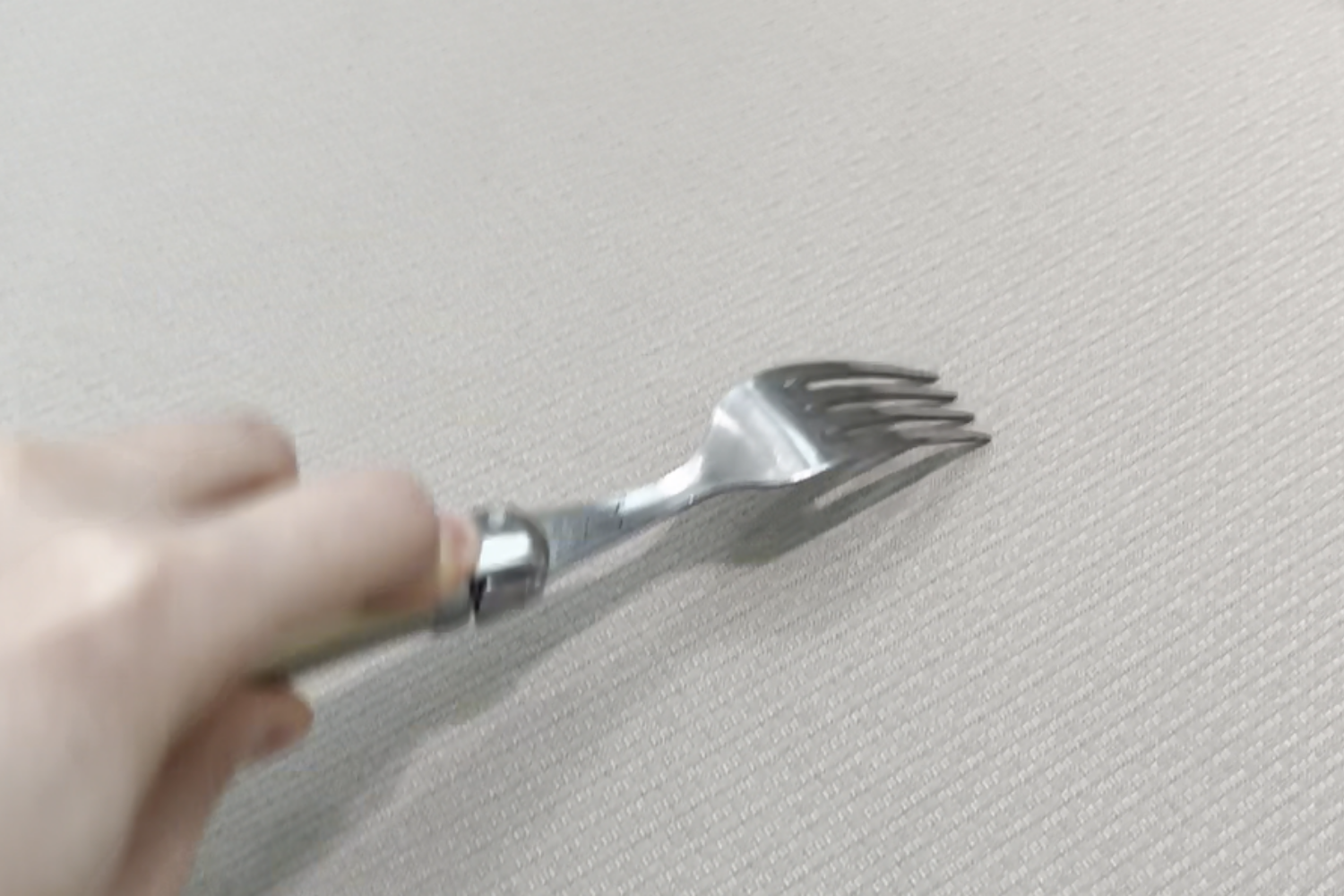 柄が曲がるほどフォークで何度かガリガリしても、特に表面の変化はありませんでした。引っ掻きによりホツレやすさなどはありません。