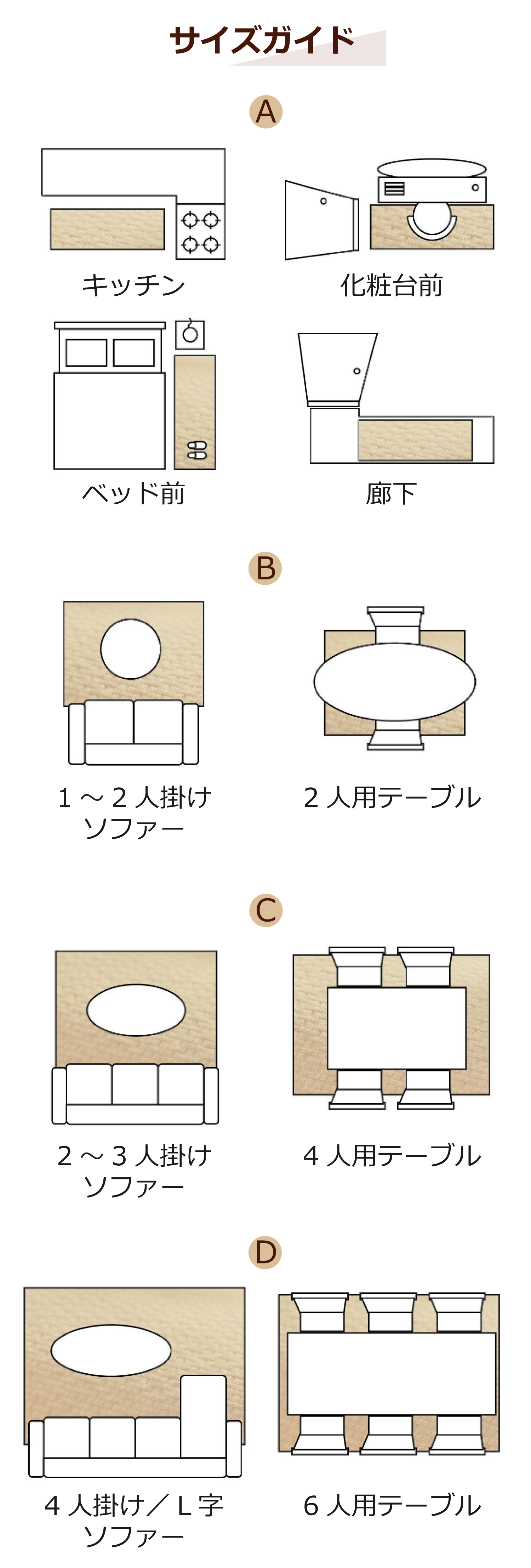 ラグを敷きたい場所はどこですか?リビング、キッチン、廊下、子供部屋、寝室など、あなたのおうちにピッタリなカラーをお選びください♪