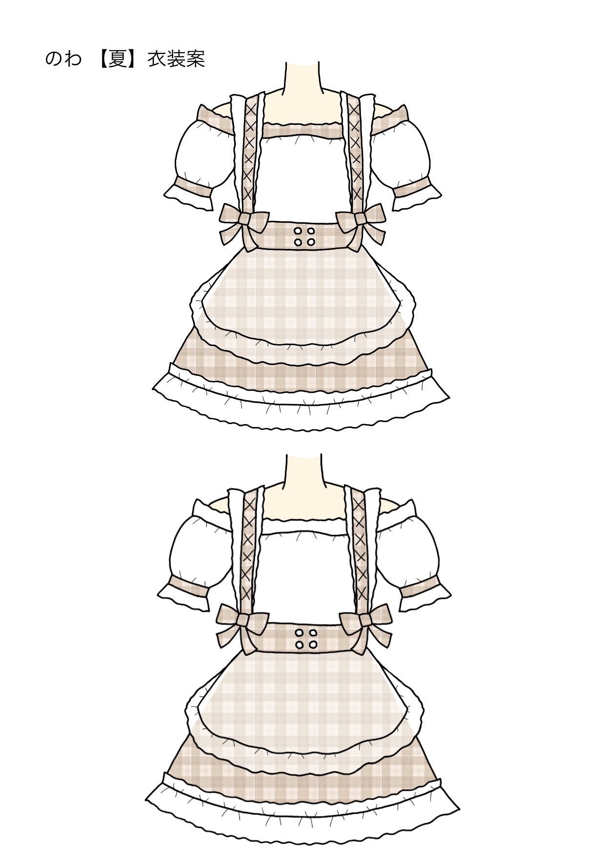 そのため冬の衣装では水色と白をベースとしたかわいらしい制服、そして夏の衣装ではデコルテをスッキリさせたブラウンをベースとした衣装を予定しております。