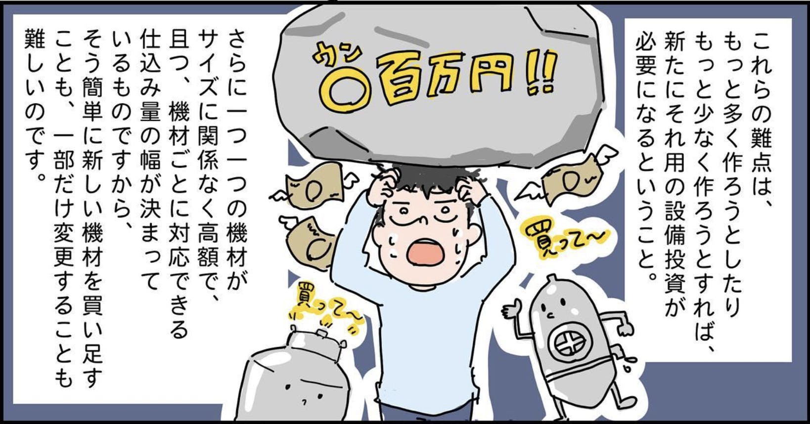 この辺りの話は、SNS漫画「えとう君のビール絵日記(小ロット生産への挑戦)」で分かりやすくまとめたことがあるので、一部参照させてください。