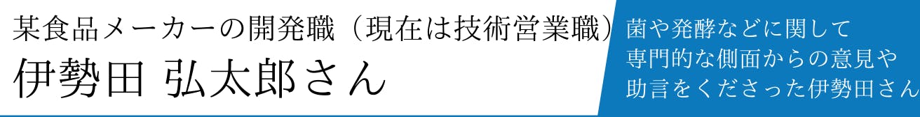 初めまして、伊勢田と申します。私と江藤くんは大学時代にテニスに明け暮れた仲ではありますが、今回は私自身が食品メーカーで開発職に携わっていたことから、コメントを出させていただく運びとなりました。
