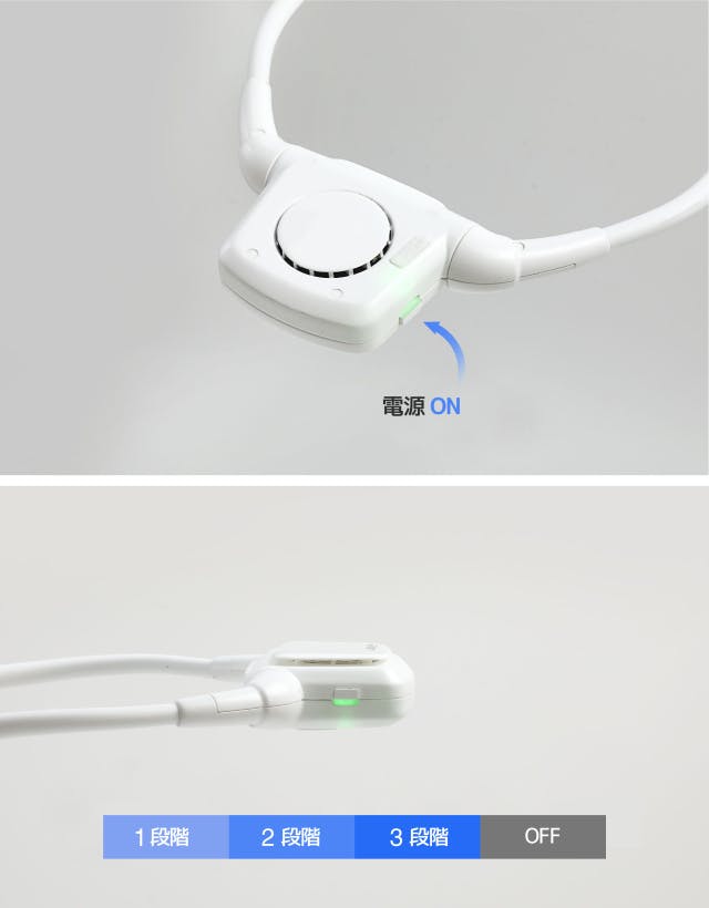 ALL7リブートは首にかけている状態で服の中にも入れて使用できるので、 首から顔の後ろ、首、背中などに直接風が当たり、さらに涼しさを感じることができます。