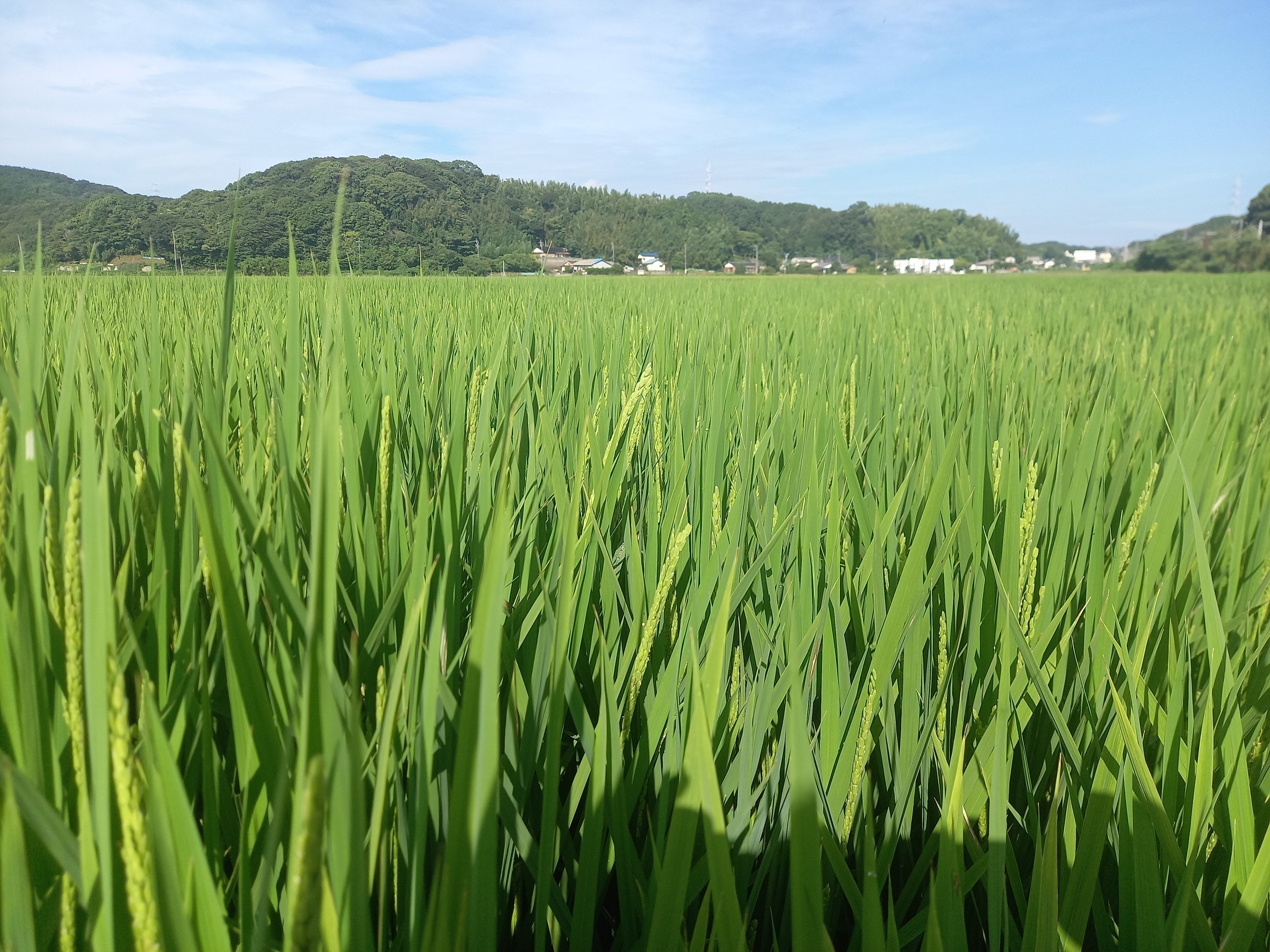 『ふくのこ』も、真夏の光を稲の葉が燦燦と浴び、分げつした茎へ伝わり、しっかりと張り巡らした根からの栄養吸収を促します。中干しをし、この時を待ち望んでいたかの様に、勢いよく育っています。子供のころから毎年見慣れた風景に、自身も育てられていたのだと実感できるお陰様の喜びを味わっています。これからも、順風満帆とは限らない、天候、自然現象にお任せする事しかできない、祈る日々を稲穂と共に過ごします。