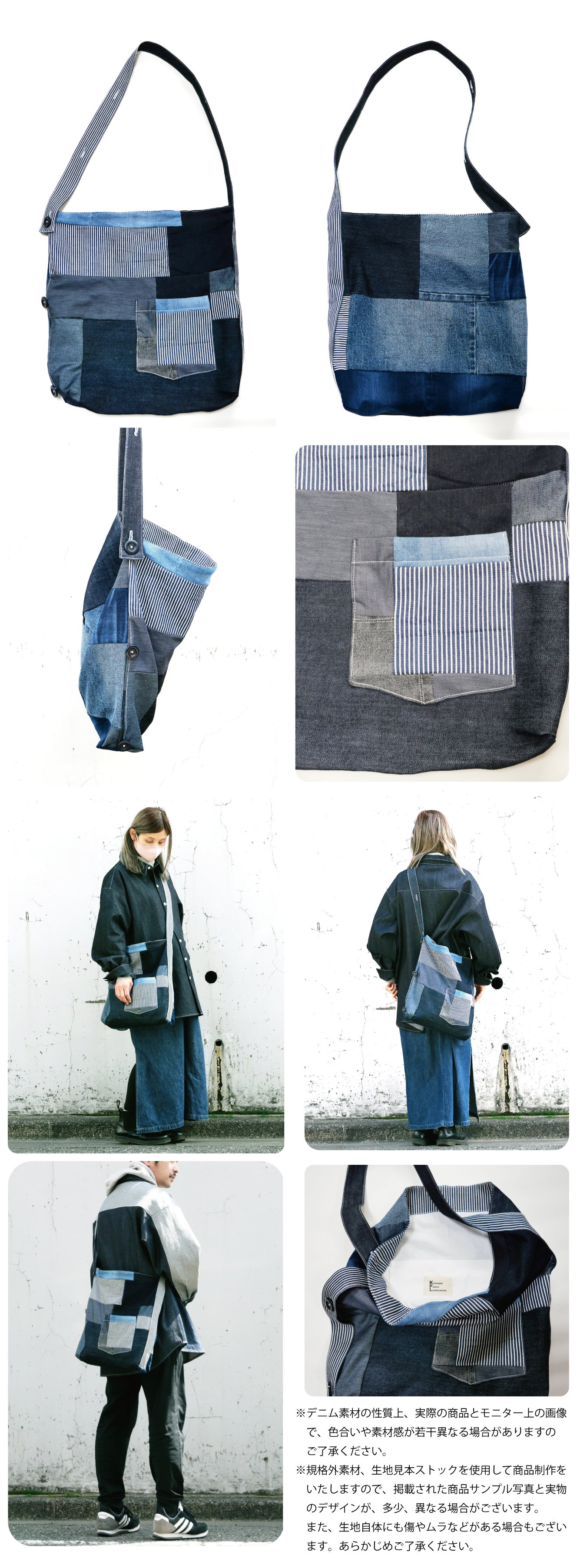 今回のオリジナル・デニムシャツを制作する際に使用した生地を有効活用し、スペシャルアイテムとしてトートバッグを作成!!ストラップは素材違いのリバーシブルで、長さがボタンで3段階に調節できる仕様です。内布は軽くて丈夫な白のコットンタイプライタークロス生地を使用し、外ポケットはスマホが入る大きさ(横16cm✖️縦17cm)、内ポケットはB5ノートがちょうど入る大きさ(横27cm✖️縦20cm)です。
