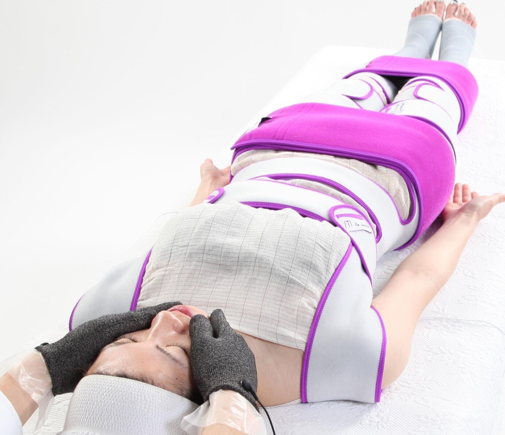 生体エレクトリックエステでは、まずは独自開発の骨格補正バンテージで姿勢を正しい位置で固定します。(骨格・筋肉・脂肪を正しい位置へと導けます。)