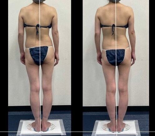 この女性は痩せてはいますが、ビフォーでは「歪み」と「たるみ」が見られます。しかし、生体エレクトリックエステを1回受けただけで、アフターではかなり目立たなくなっているのが、おわかりになりますでしょうか?同じ年齢・身長・体重の人でも見た目の印象がガラリと変わるポイントがここなんです!!