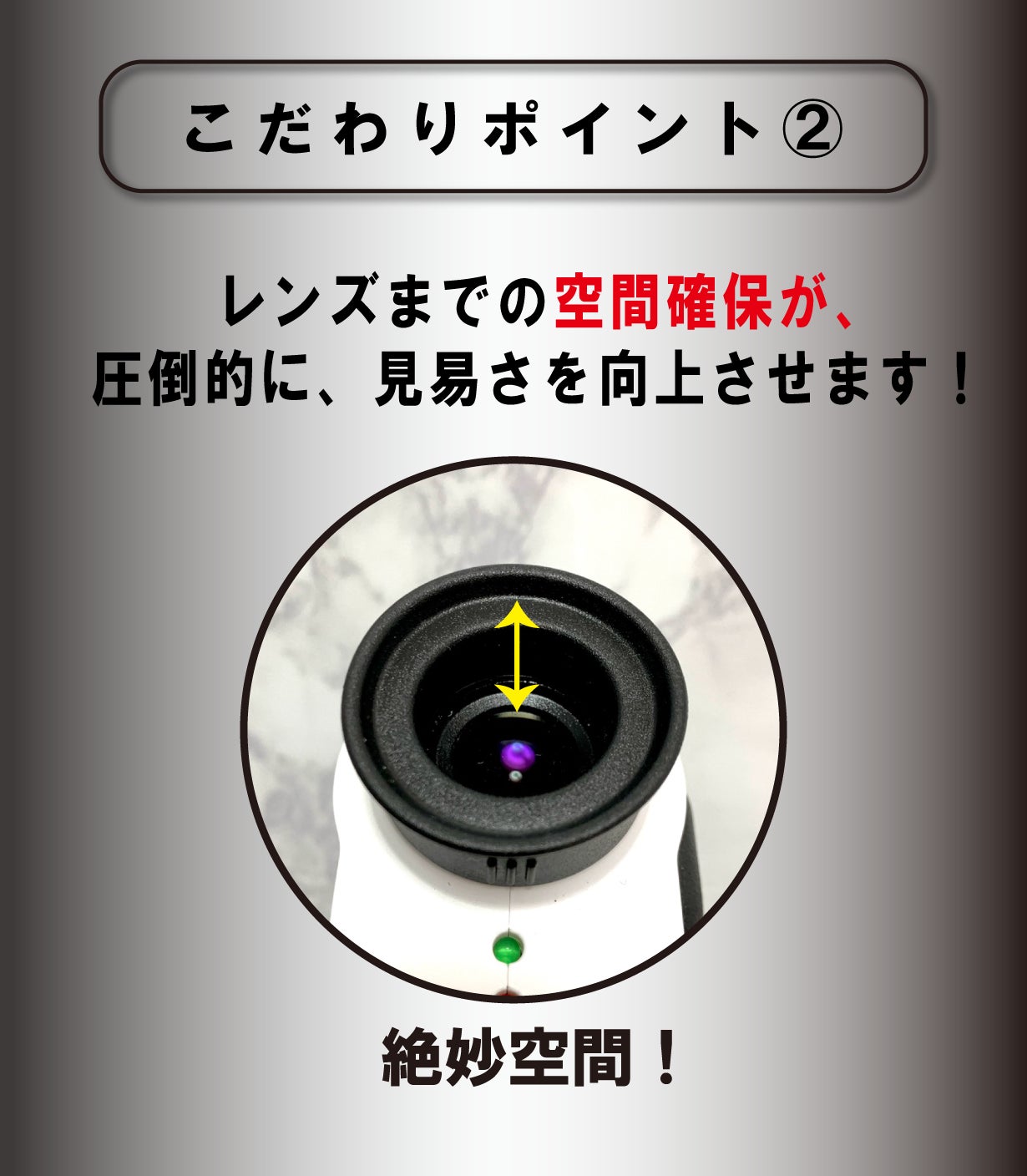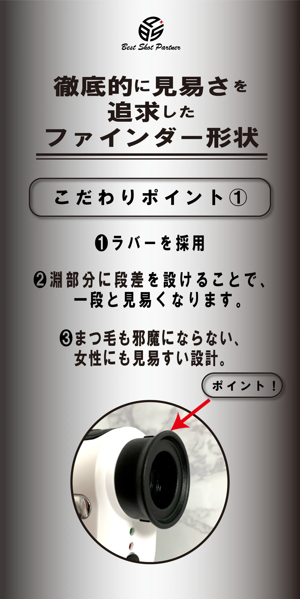 抜群に見易いレンズ性能に「ファインダーの見やすさ」も加わり、他に比べ圧倒的な差が生まれます。
