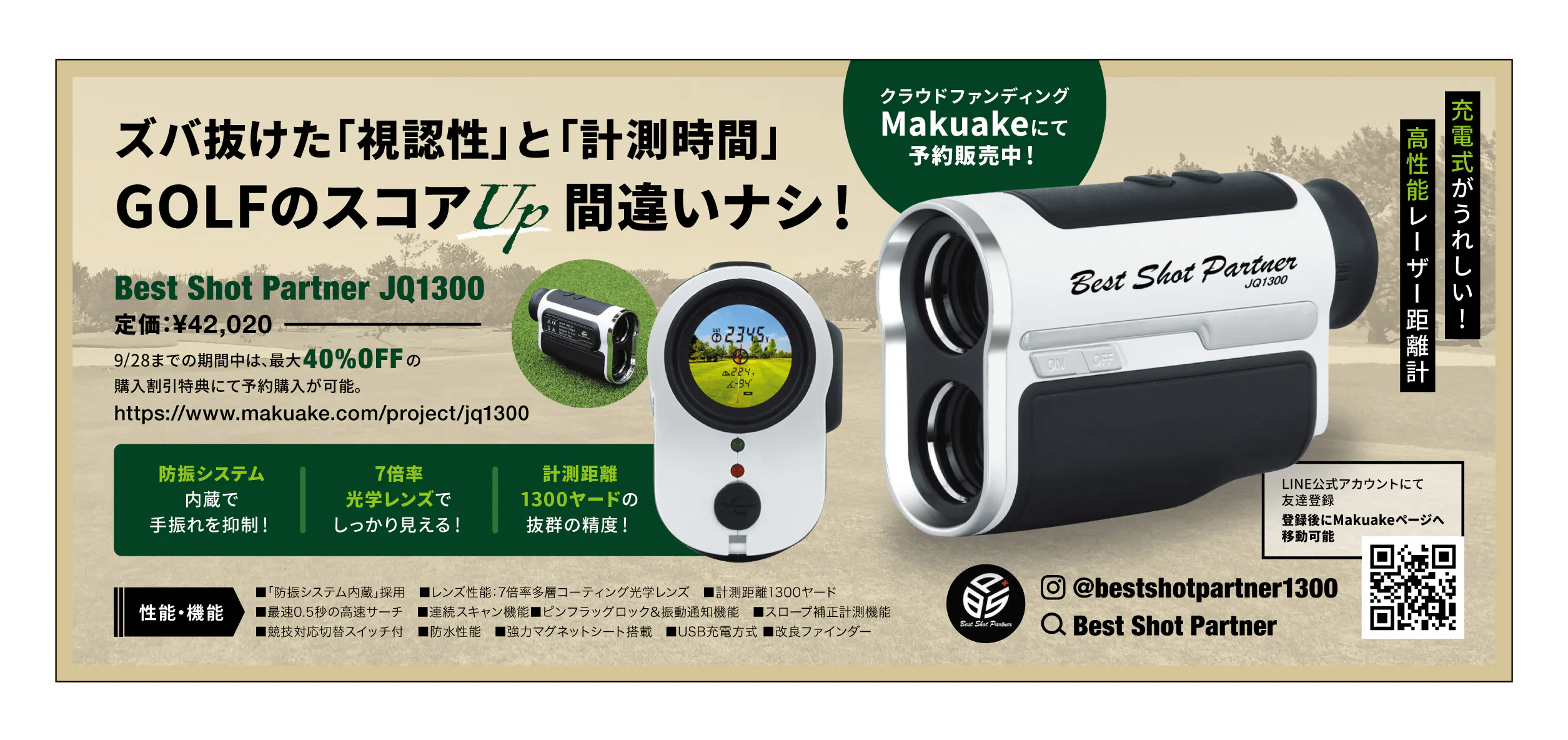 ◆レーザー距離計『Best Shot Partner JQ1300』で、「打つべき距離」が一目瞭然!!