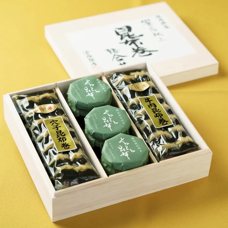 高級旅館、ホテル、料亭でしか口にすることができない、プロ仕様の厳しい基準をクリアした、『本格練炭直火炊き昆布巻』と新開発の大人の味の昆布の佃煮『とろとろ昆布』を詰め合わせました。練炭直火炊き工場から直接お届け致します。職人の手仕事が目に浮かぶ商品に仕上がっています。