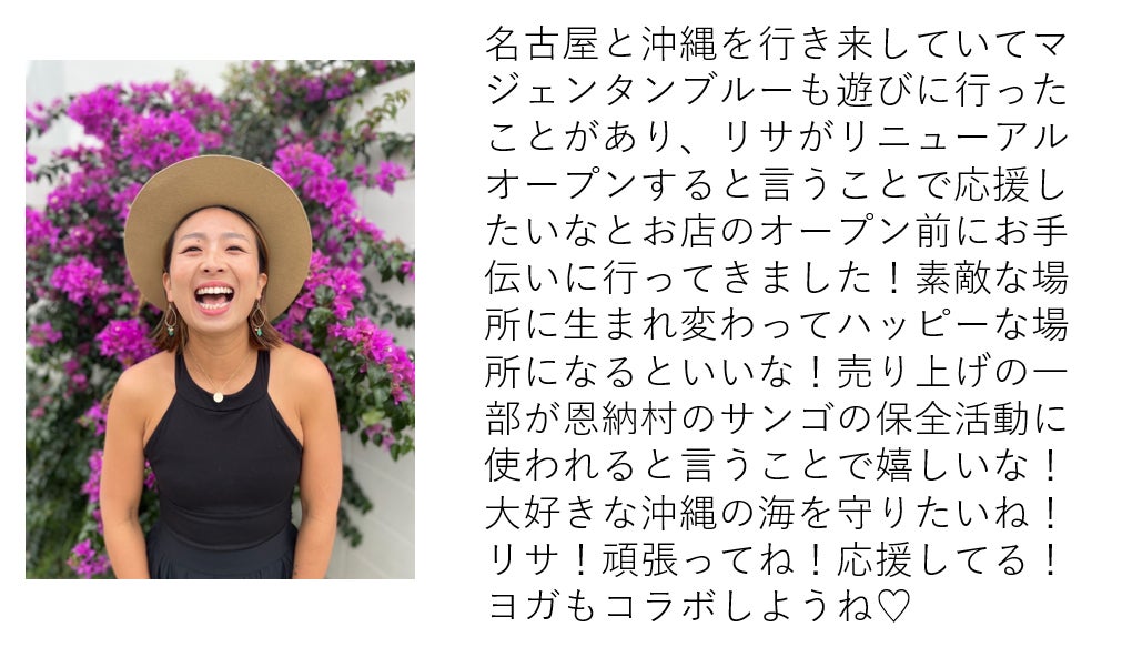 また、売り上げの一部は恩納村のサンゴ基金へ寄付を行い、ビーチクリーン活動など、沖縄の自然を守る活動もしていきます。