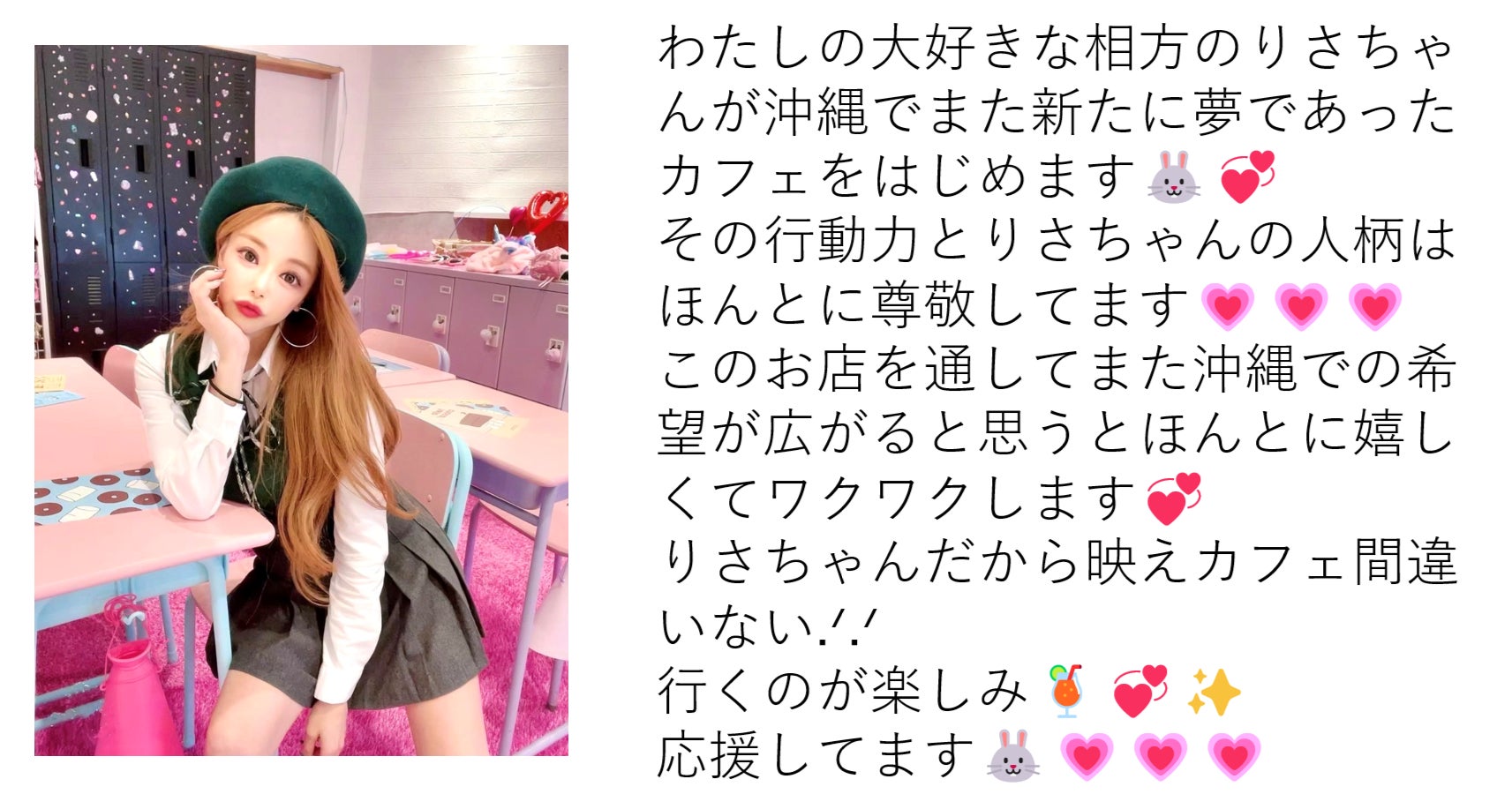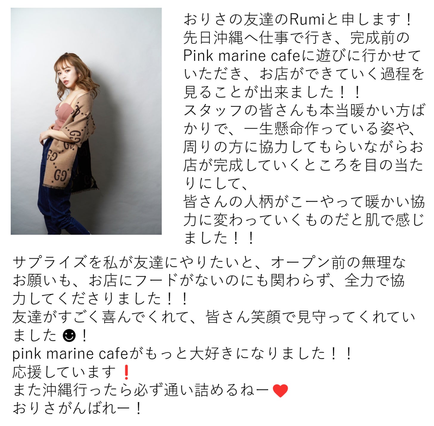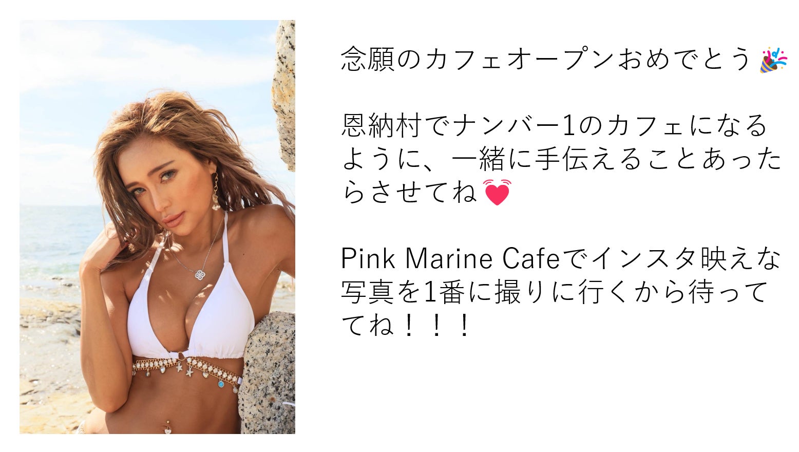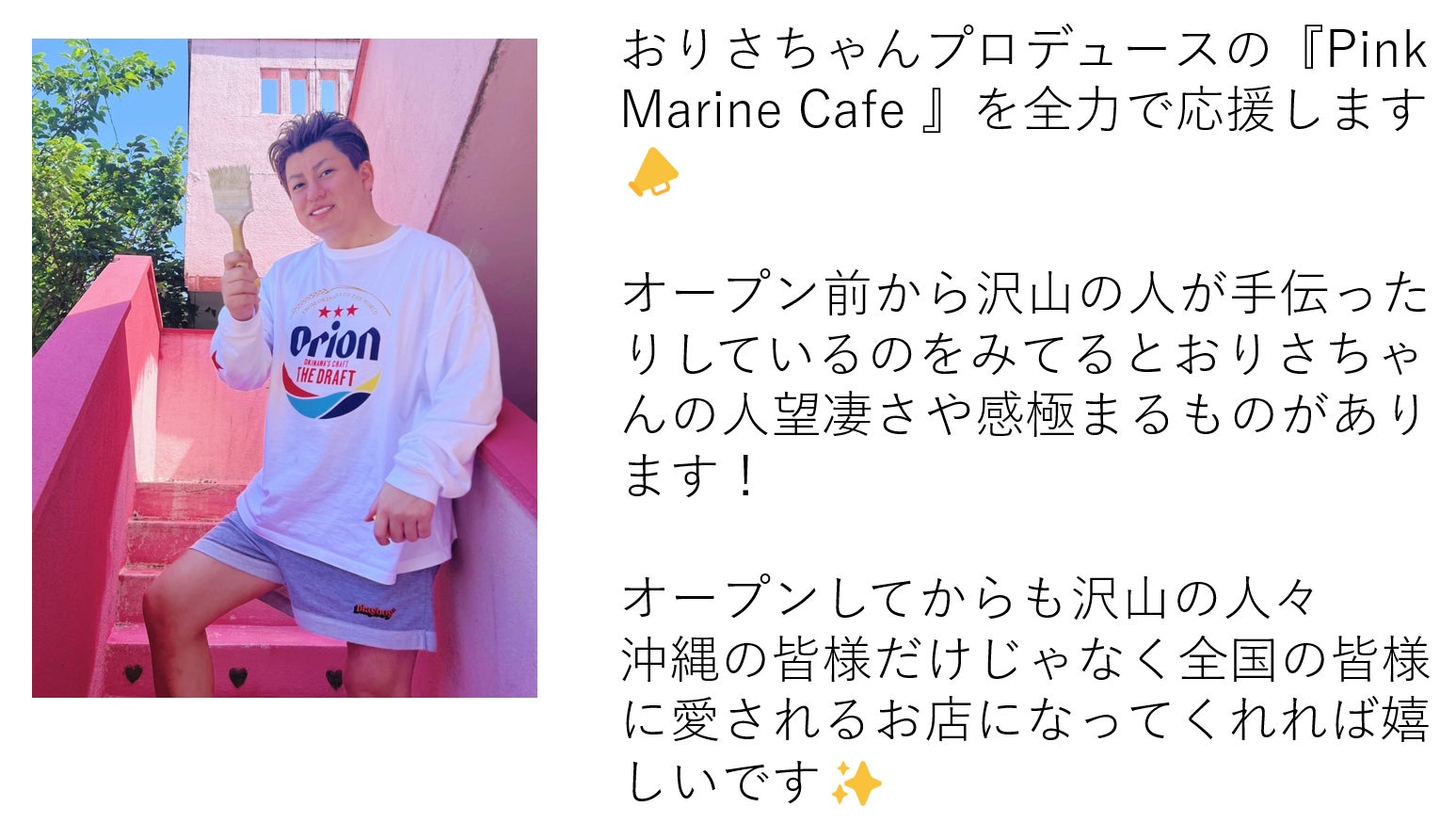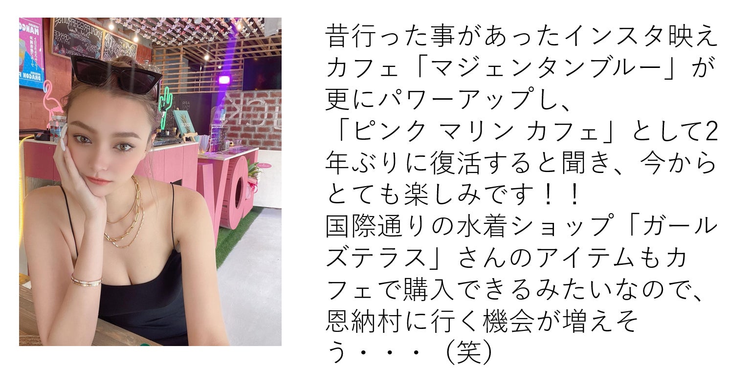 店舗名は『PINK MARINE CAFE』として、私おりさ自身も店頭に立つ予定です。観光に訪れる方へより沖縄を感じることができるような素敵な思い出を提供したいです。