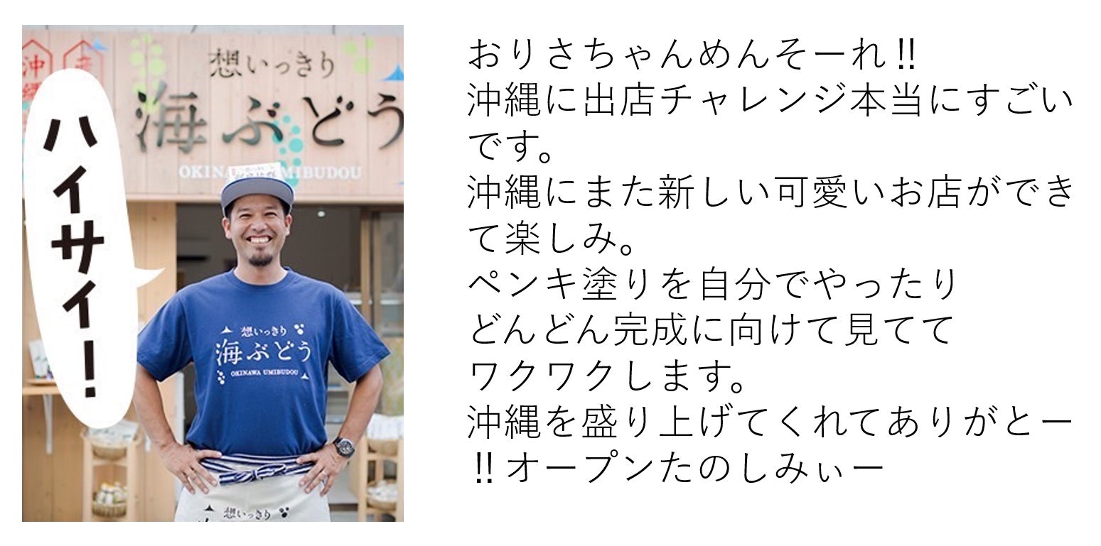 沖縄を愛するみんなと一緒に店舗を完成させて、沖縄を元気にしたいです。