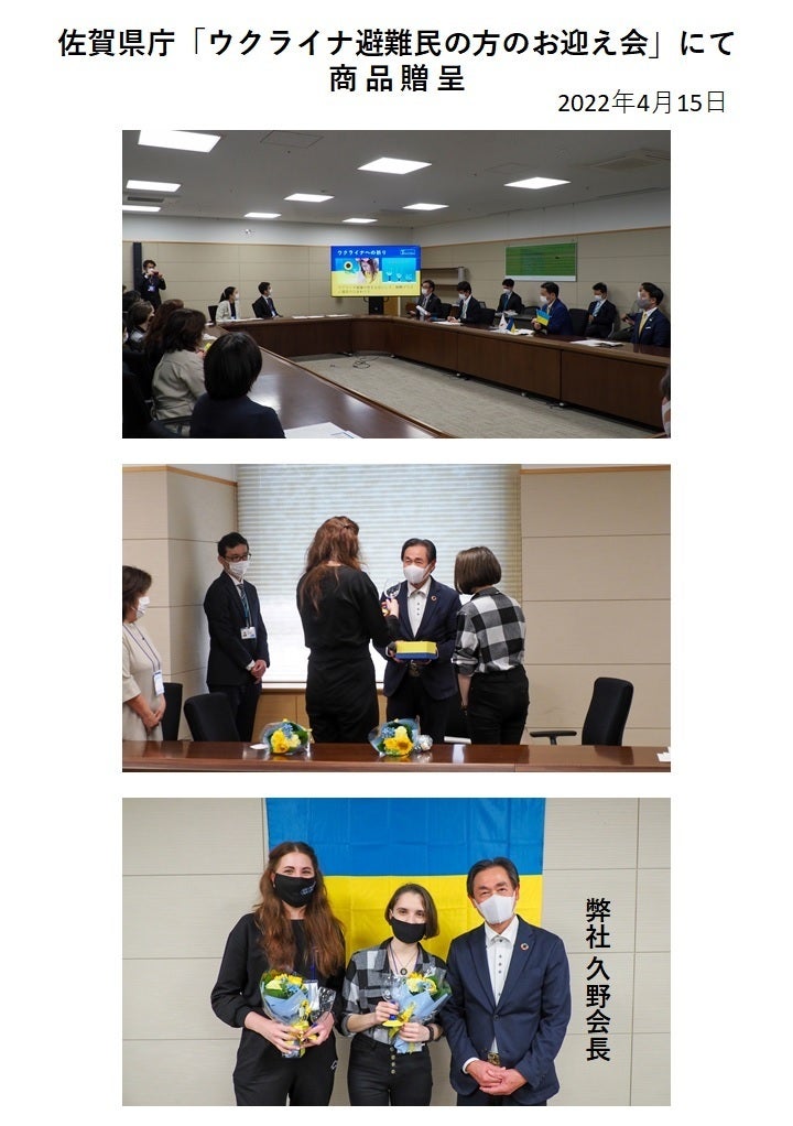 佐賀県知事と佐賀市長がご出席されたウクライナ避難民をお迎えするセレモニーに出席させて頂き、避難民の方に直接プレゼントしました。サプライズのプレゼントで、涙ぐんでいらっしゃいました。